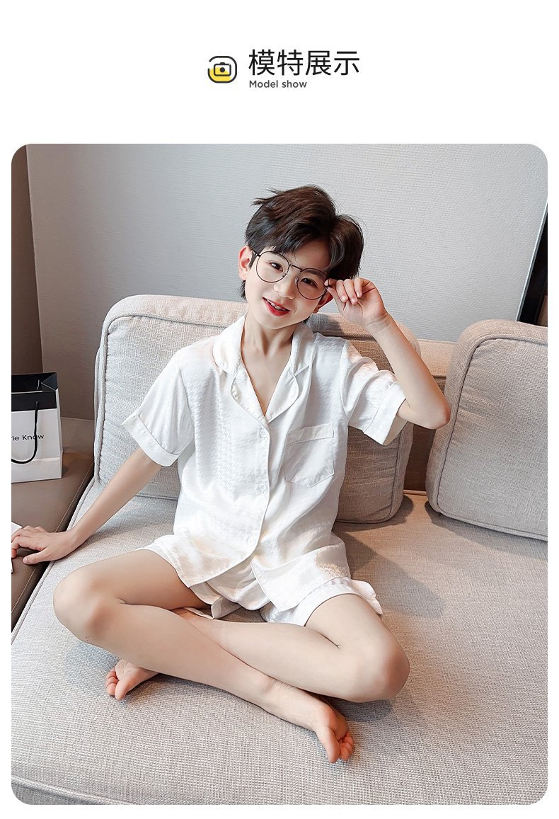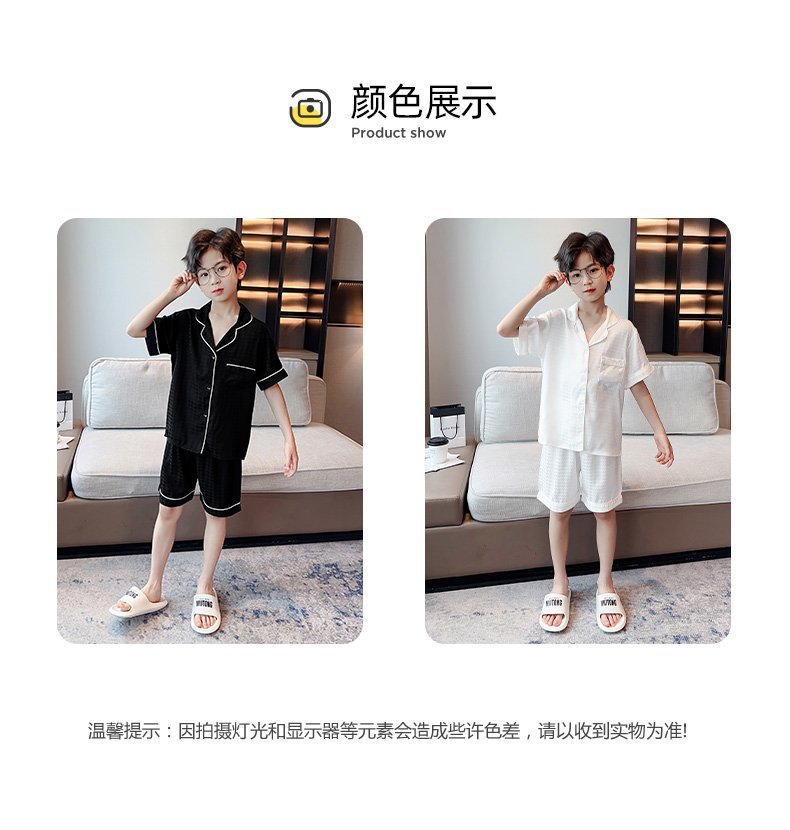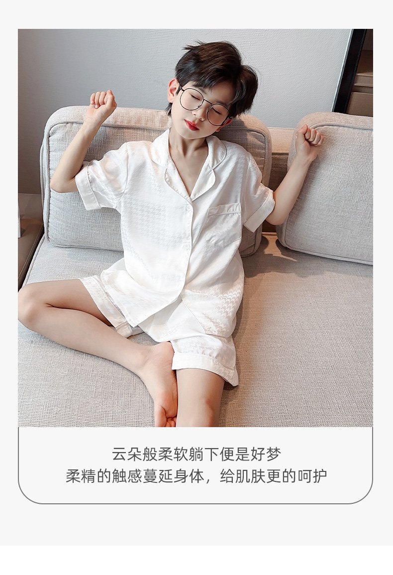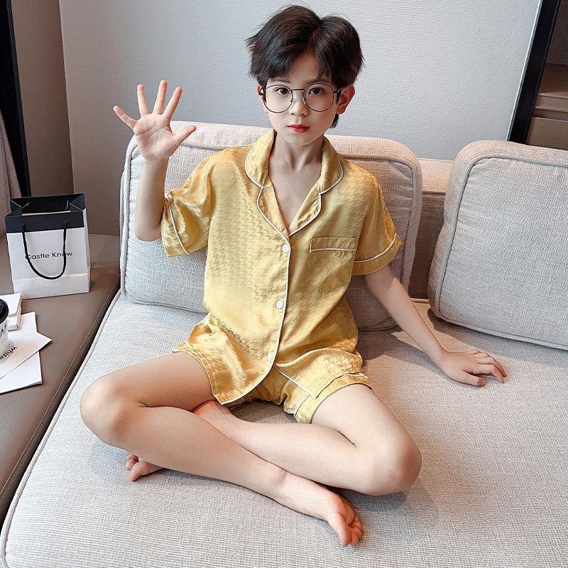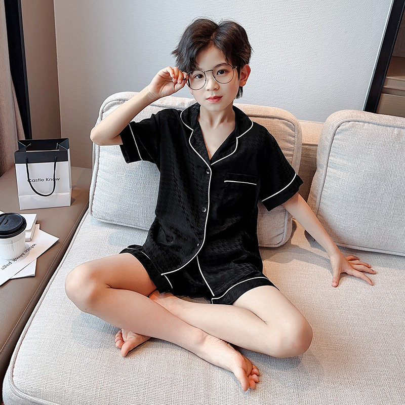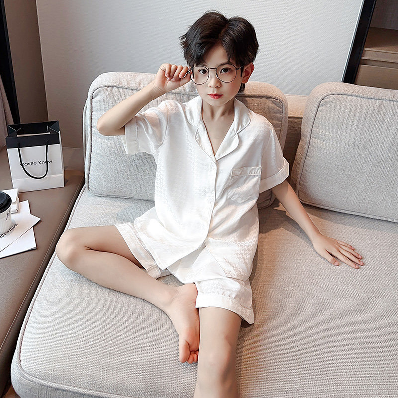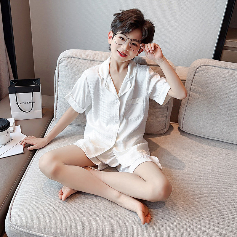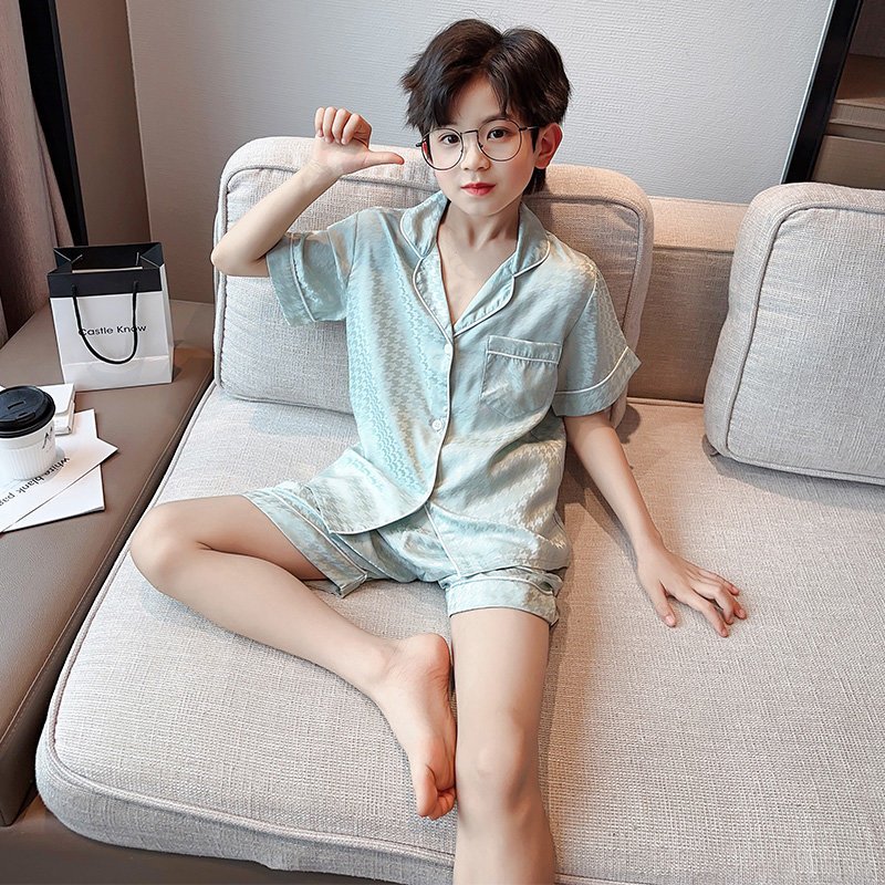 아동용 아이스 실크 잠옷, 남아용 여름 신작 라펠 남아용 홈웨어 세트, 패셔너블한 아우터웨어, 큰 아동용 에어컨 의류스토어 가기