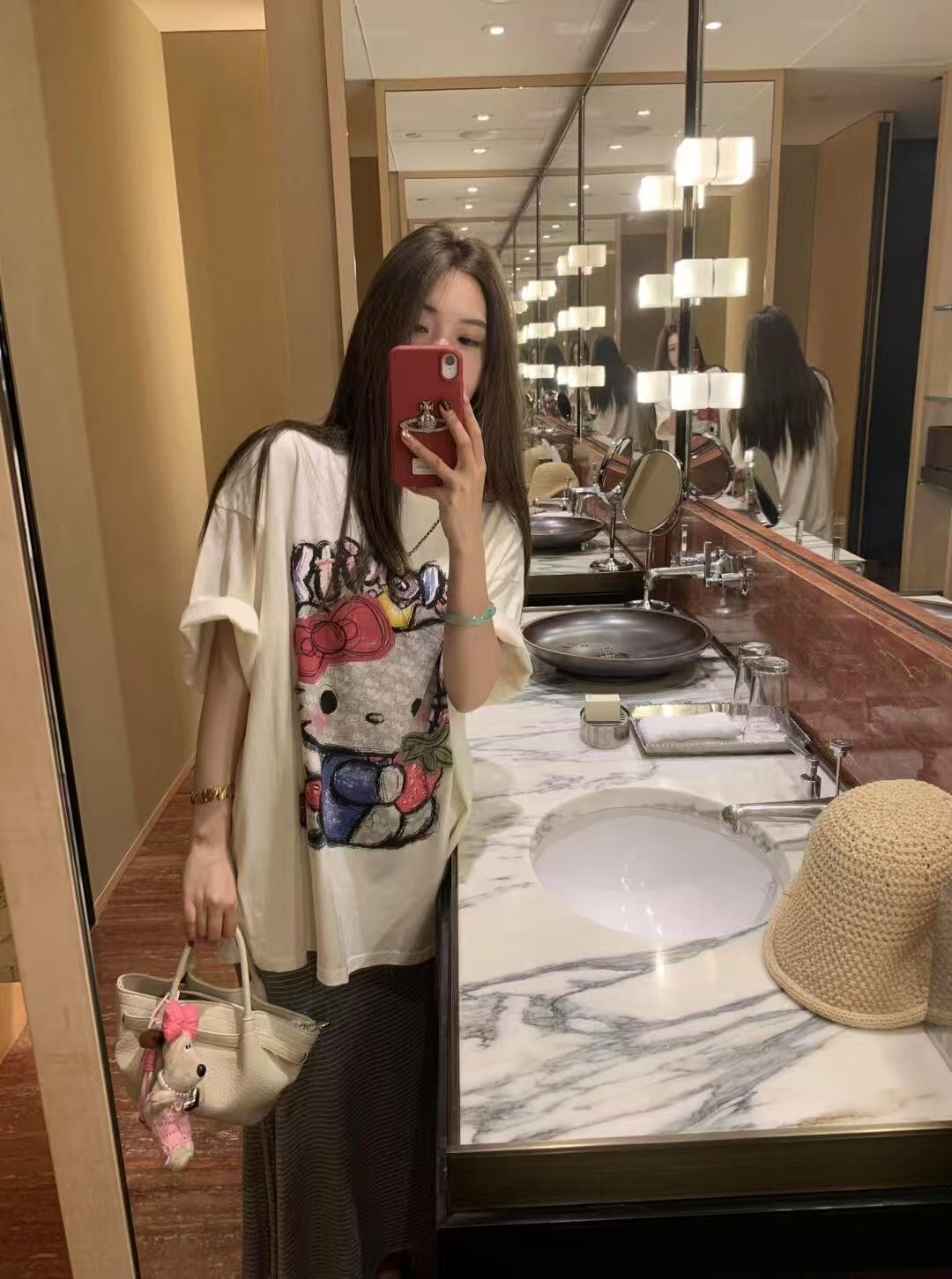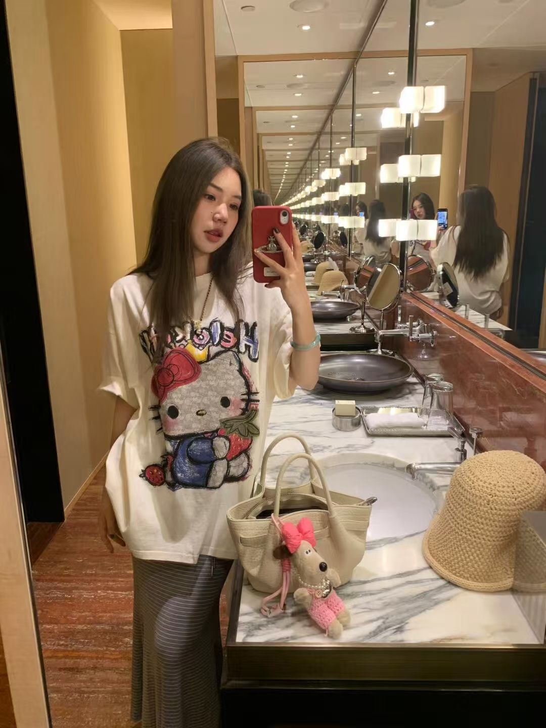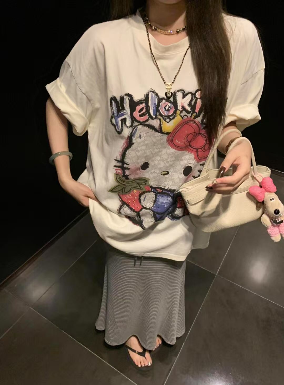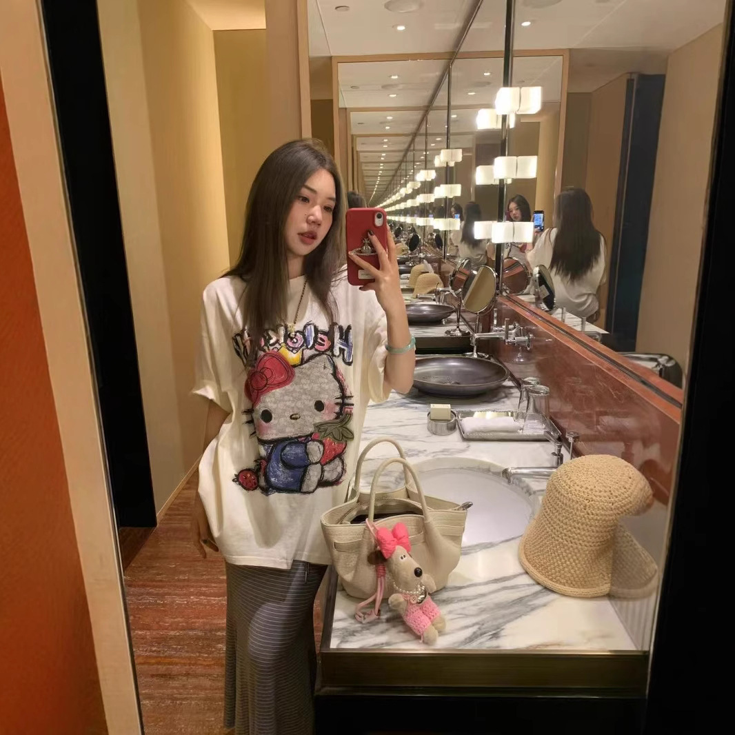 40 카운트 순수 코튼 귀여운 연령 감소 만화 프린트 루즈 코튼 라운드 넥 반팔 티셔츠 여성용스토어 가기