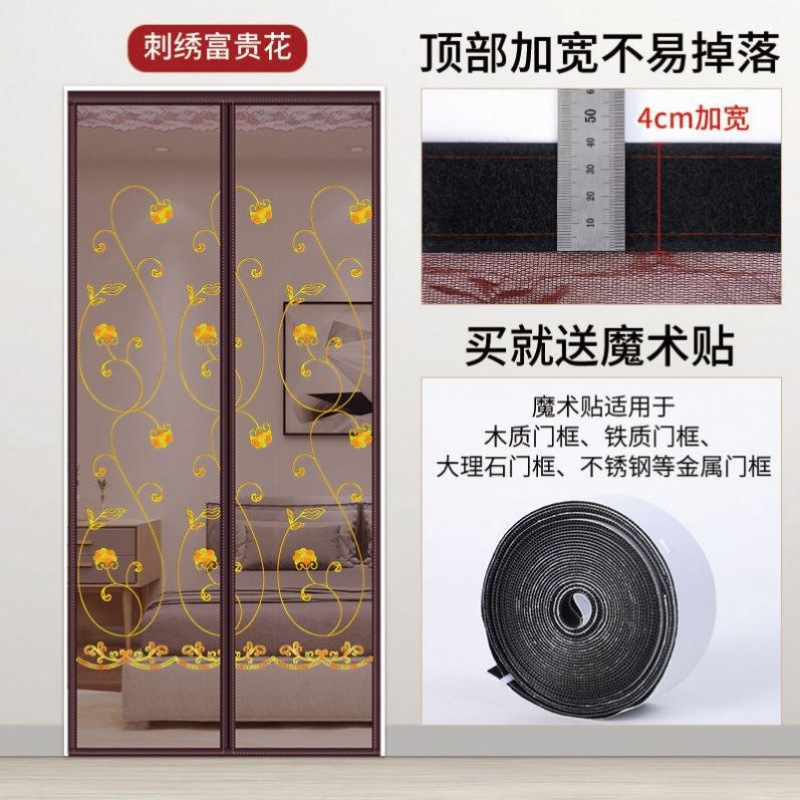 모기 방지 도어 커튼, 새로운 스타일의 천공 없는 거실 철문, 여름 칸막이 커튼, 시골 귀여운 바닥에서 천장까지 이어지는 문스토어 가기