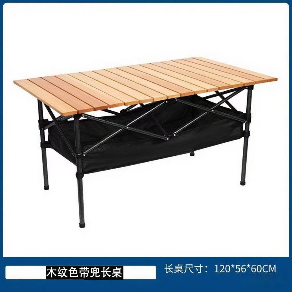 • 나뭇결 컬러 확장 테이블 120*55*50 [그물 포켓 스타일] 접이식 테이블