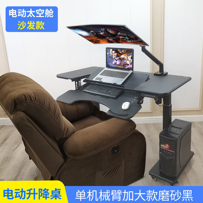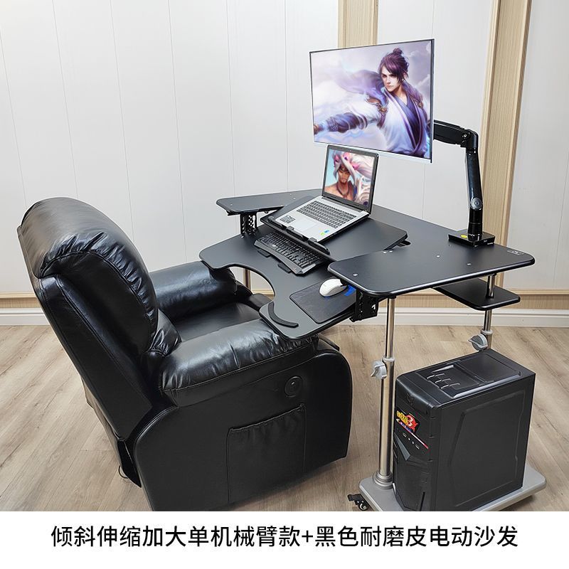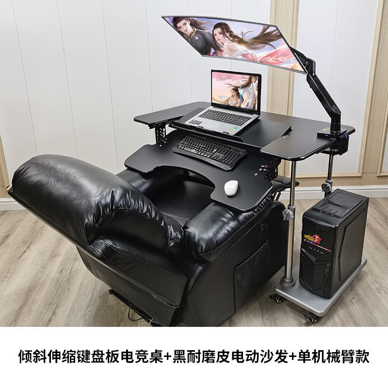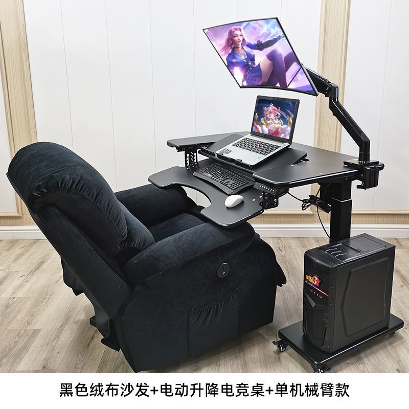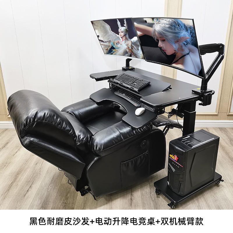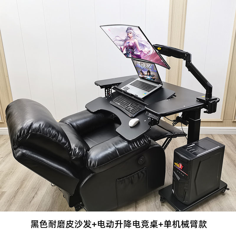 • 31호 전동 리프팅 게이밍 테이블 + 블랙 가죽 소파 + 싱글 암