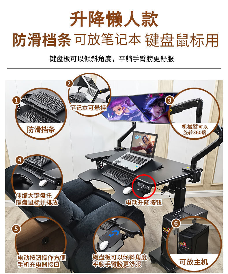 데스크탑 게이밍 테이블 컴퓨터 테이블 모바일 리프팅 스탠드 두꺼운 접이식 기술 감각 서스펜션 컴퓨터 스탠드 게으른 테이블