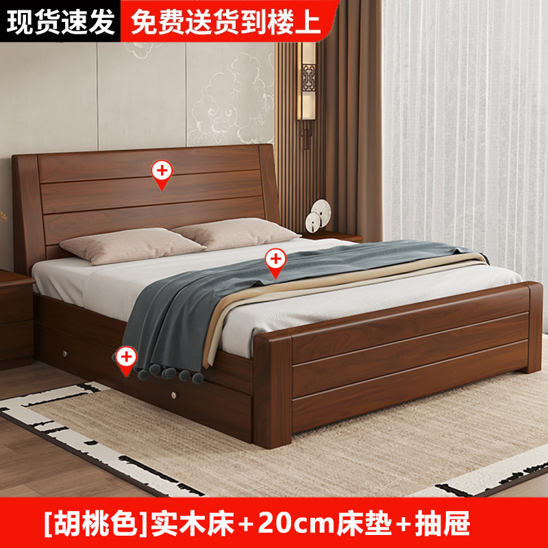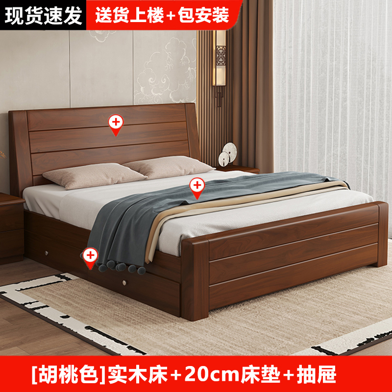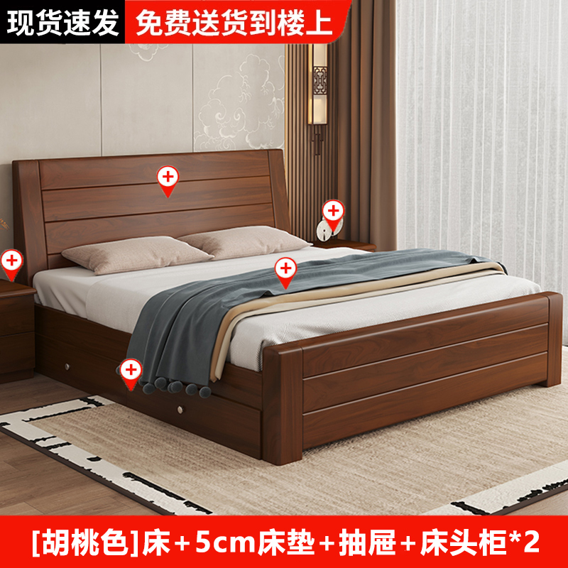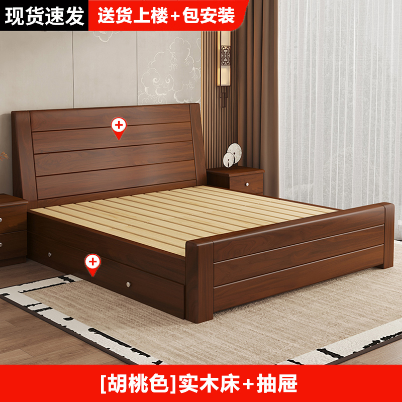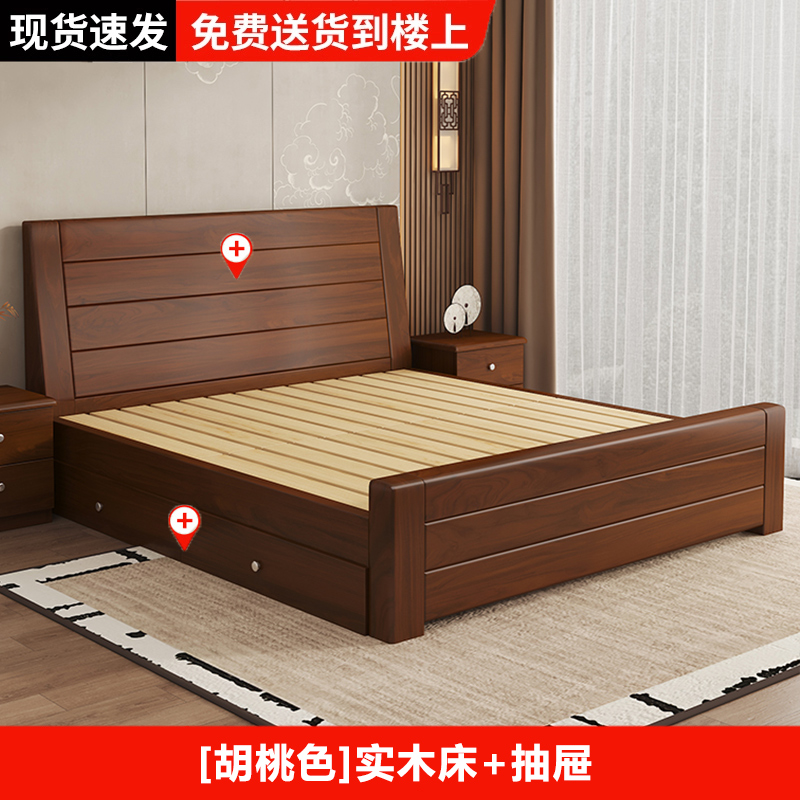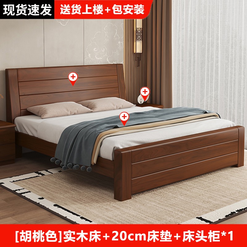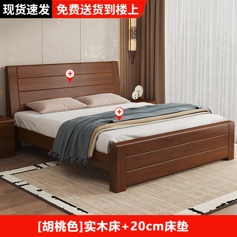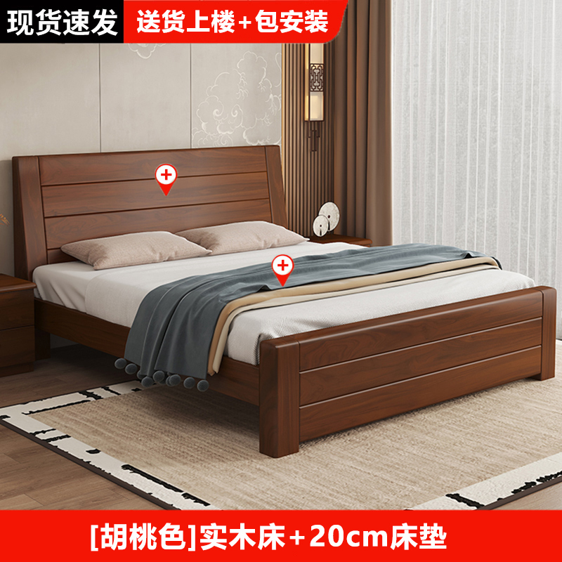 원목 침대 중국 스타일 1.8m 두꺼운 더블 침대 경제적 인 간단한 가정용 1.5m 임대 싱글 침대 1.2m스토어 가기