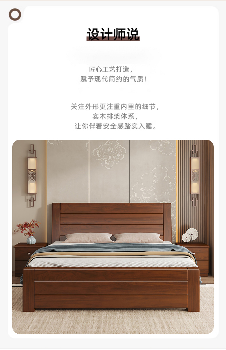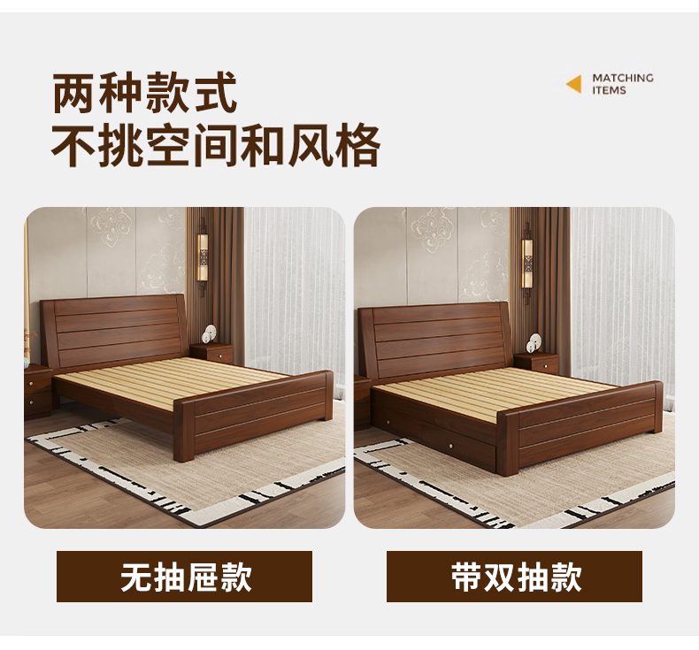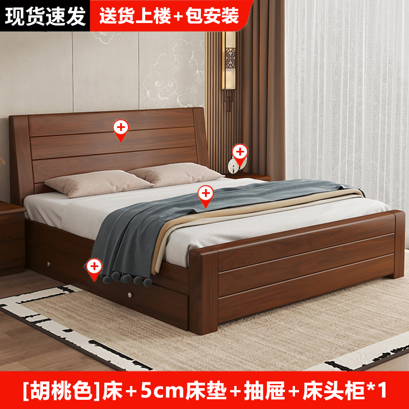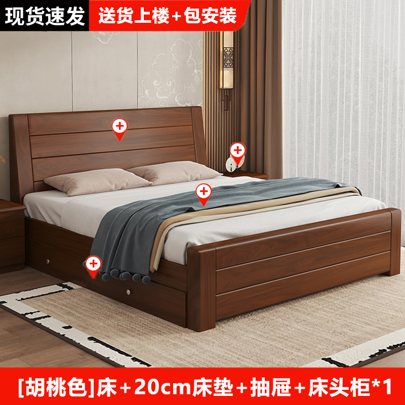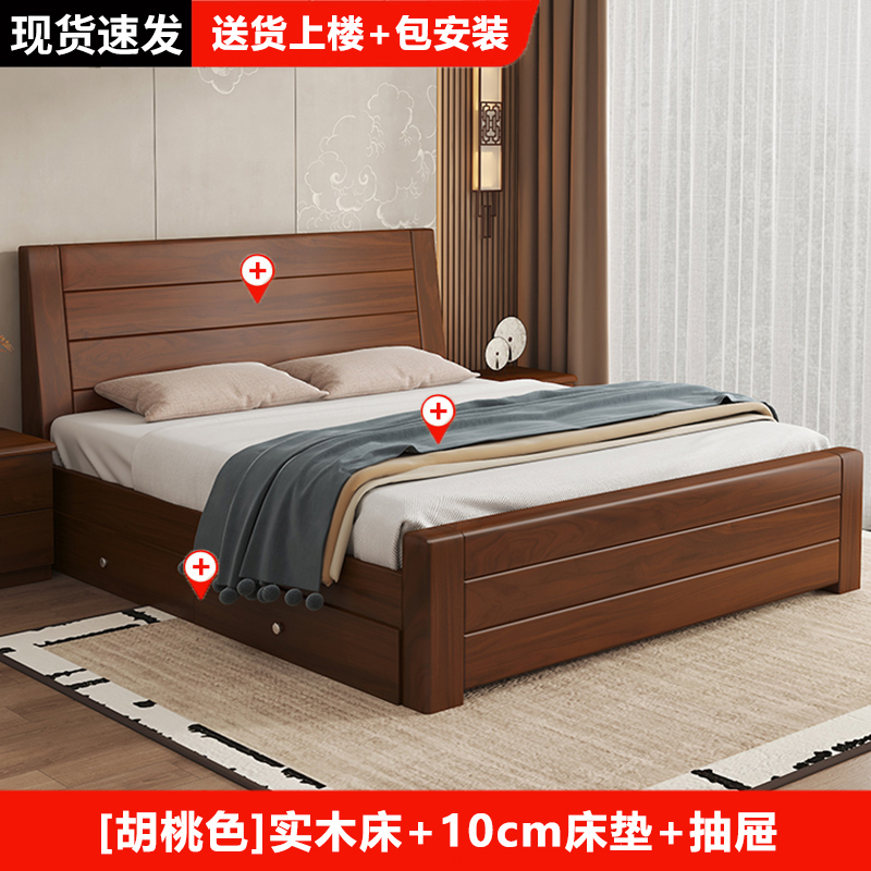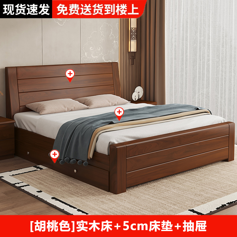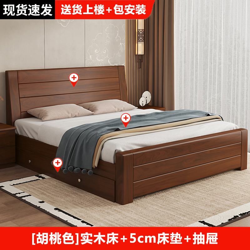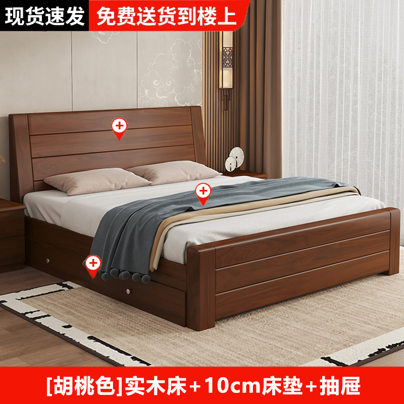 원목 침대 중국 스타일 1.8m 두꺼운 더블 침대 경제적 인 간단한 가정용 1.5m 임대 싱글 침대 1.2m스토어 가기
