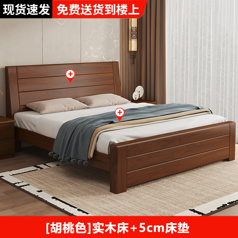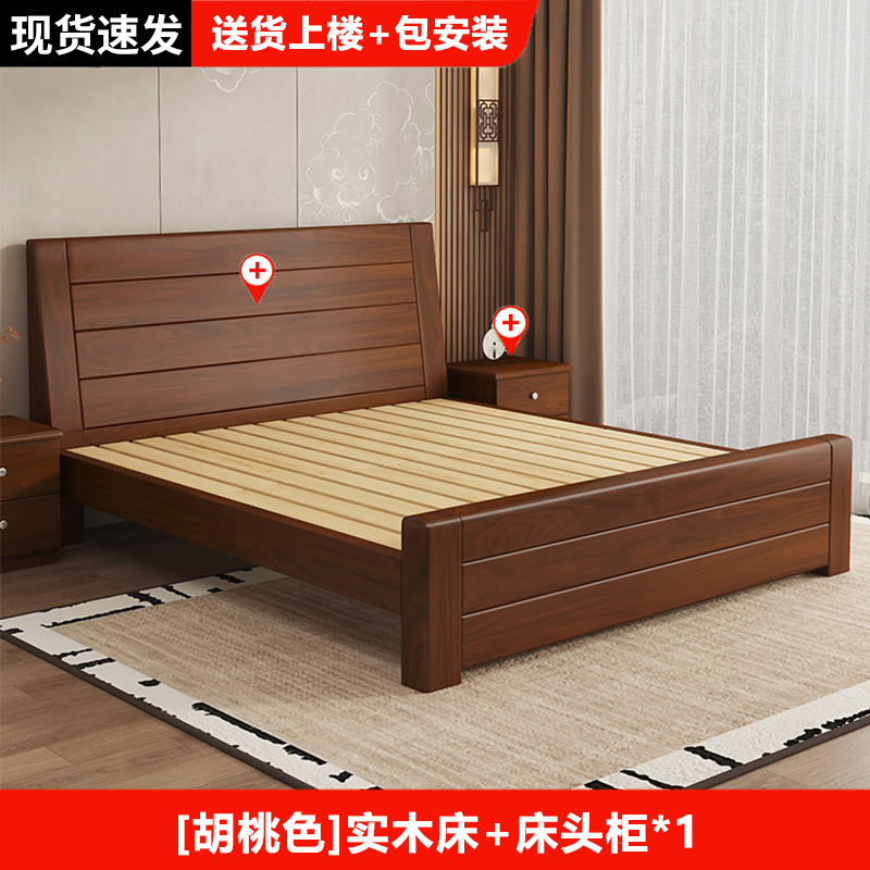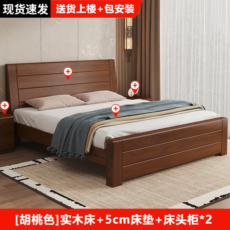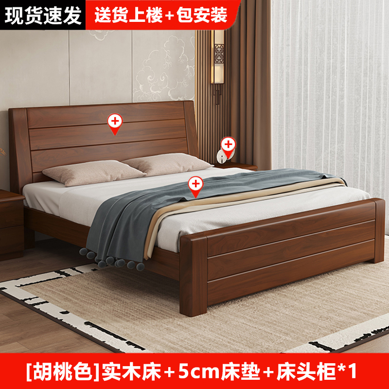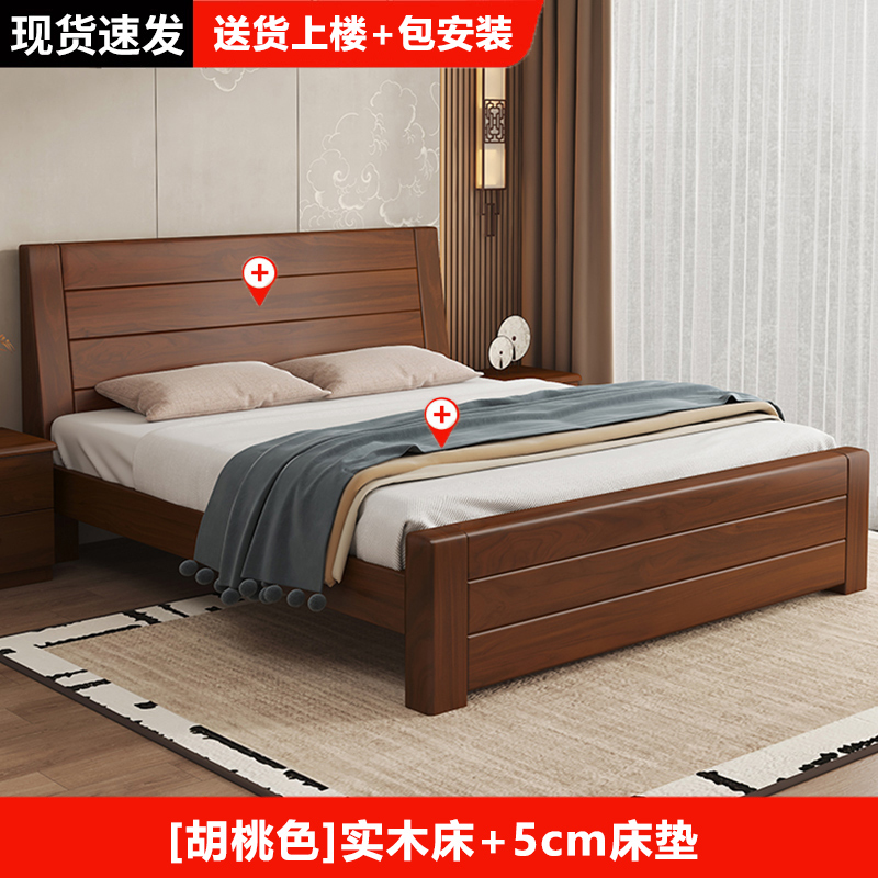 원목 침대 중국 스타일 1.8m 두꺼운 더블 침대 경제적 인 간단한 가정용 1.5m 임대 싱글 침대 1.2m
