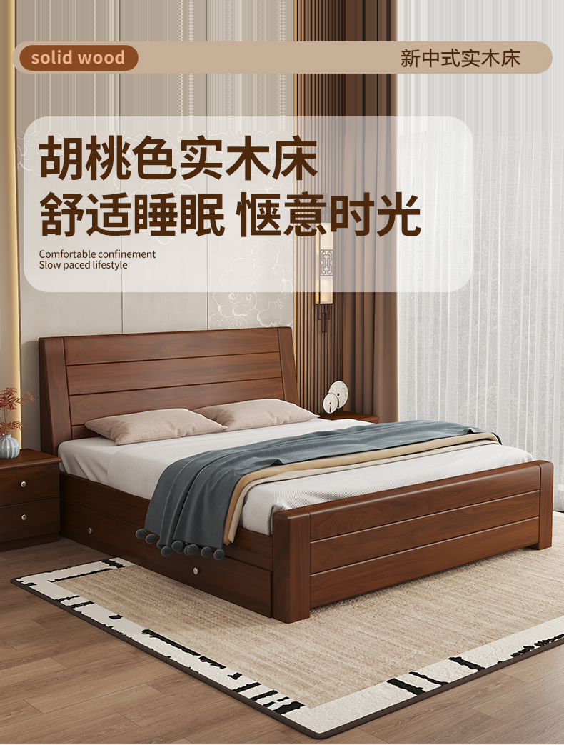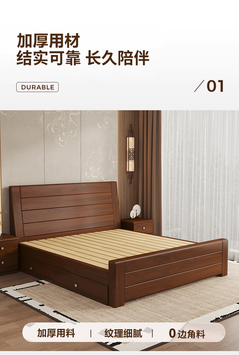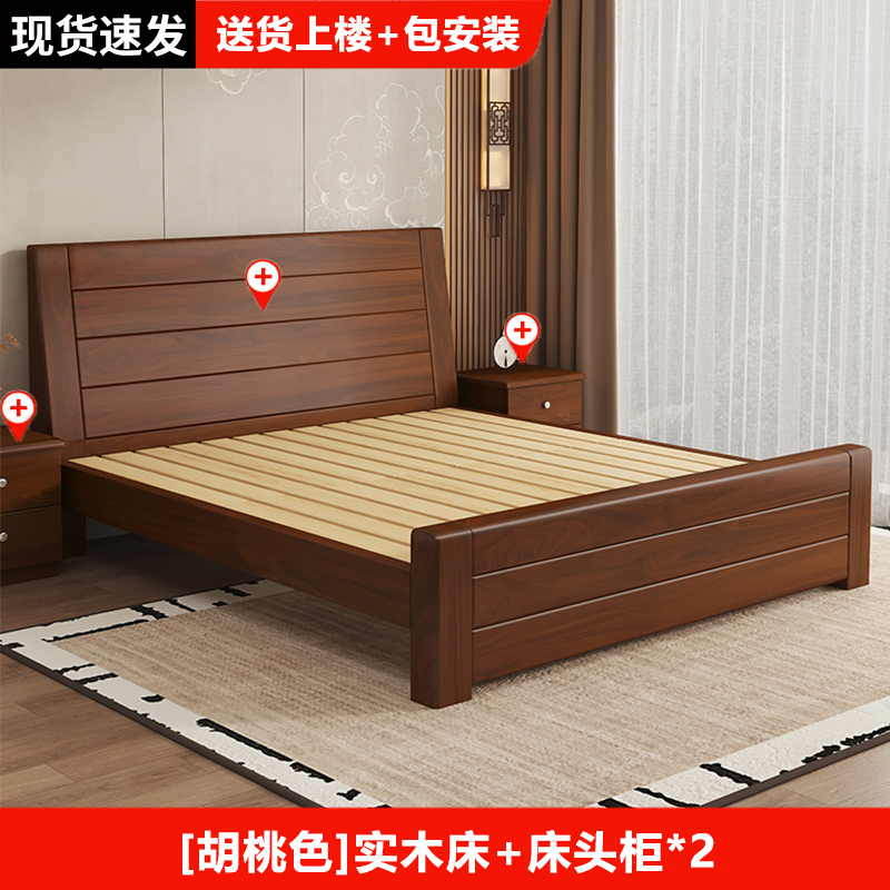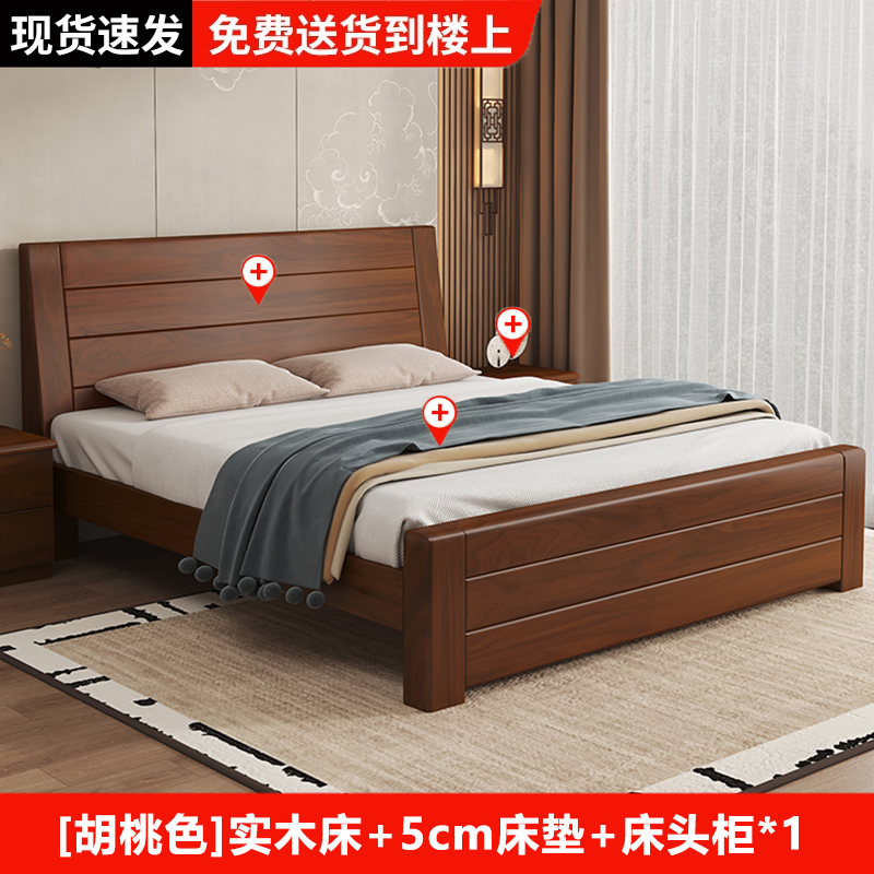원목 침대 중국 스타일 1.8m 두꺼운 더블 침대 경제적 인 간단한 가정용 1.5m 임대 싱글 침대 1.2m
