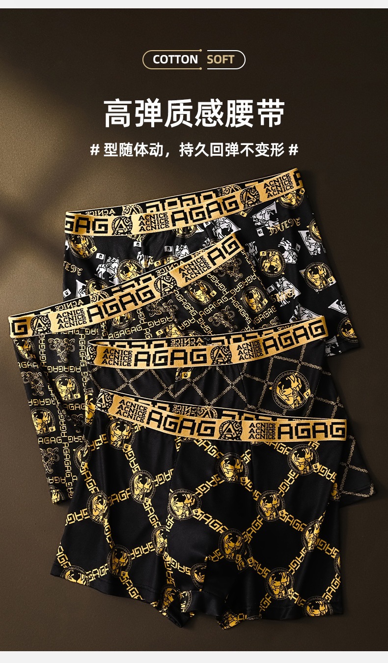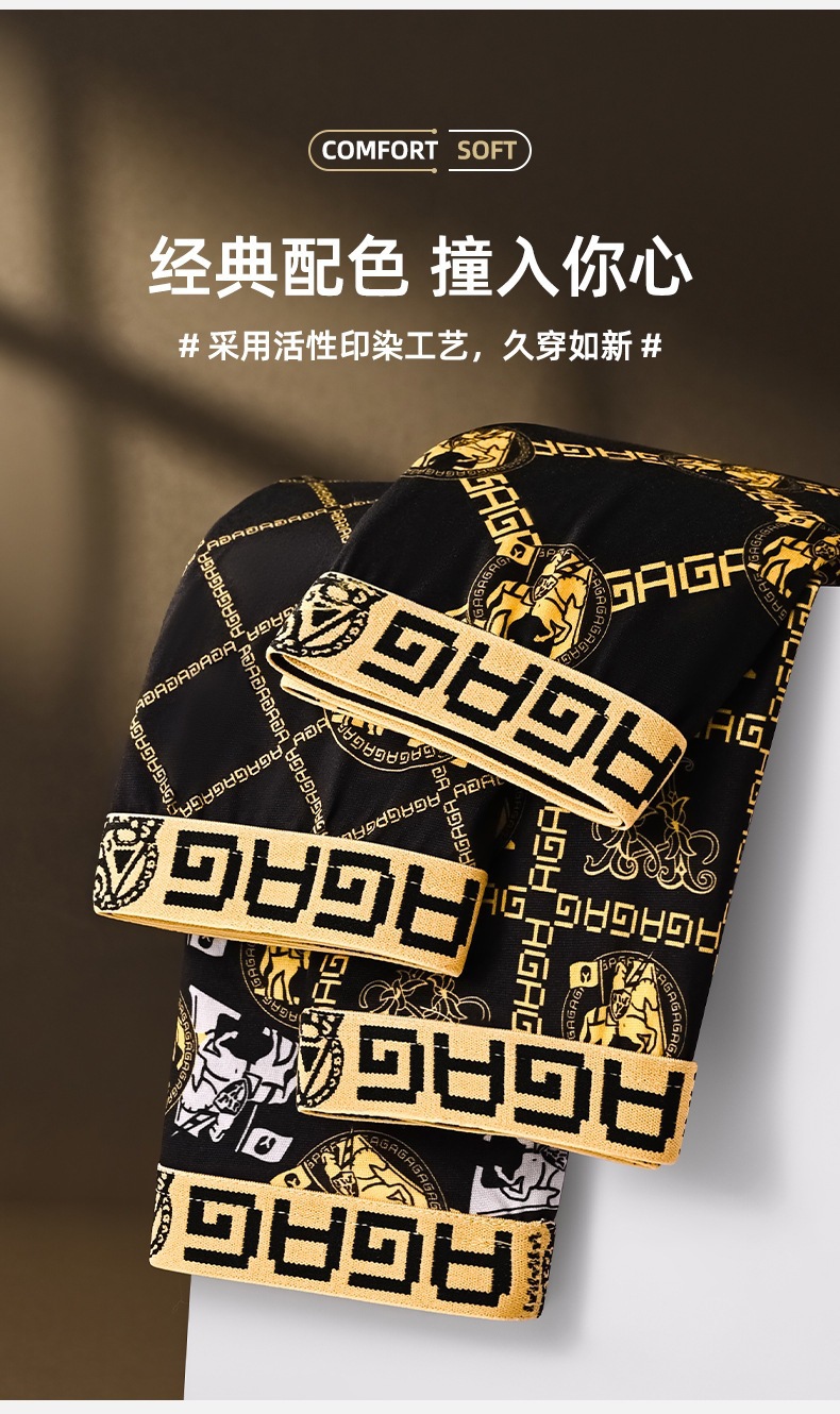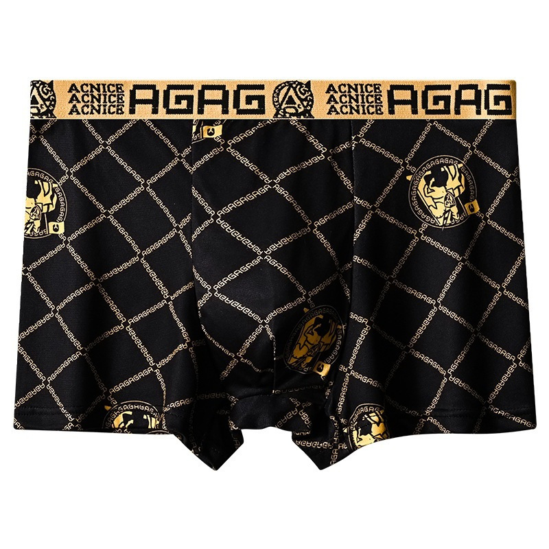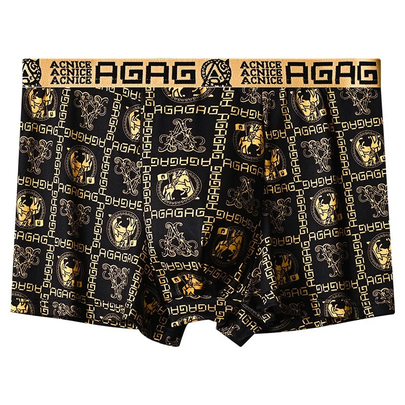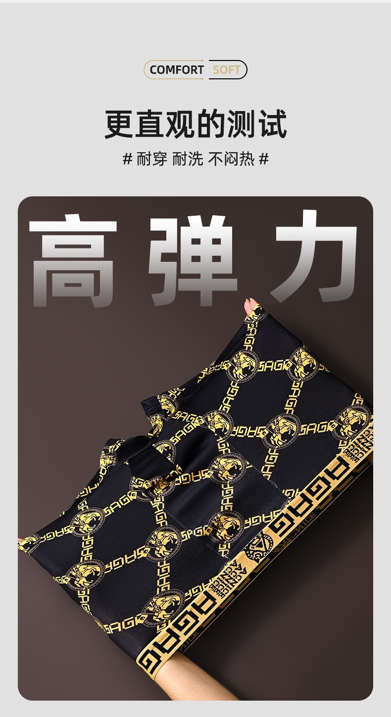 프린트 남성 속옷, 통기성 사각 팬티, 얇은 청소년 남성 트렌디한 대형 블랙 골드 사각 팬티 남성용스토어 가기
