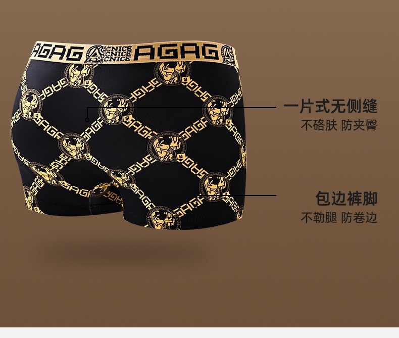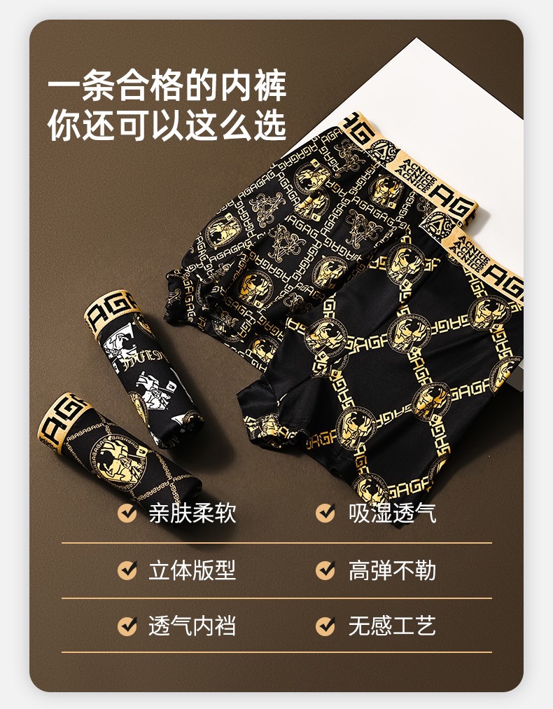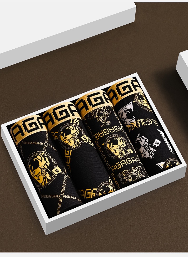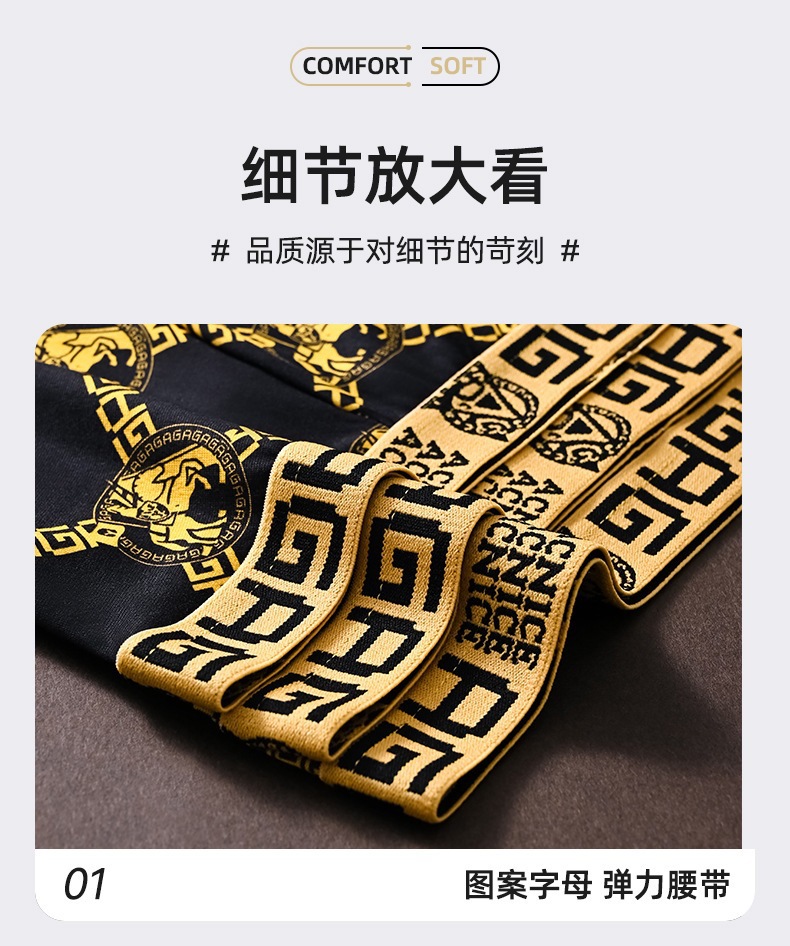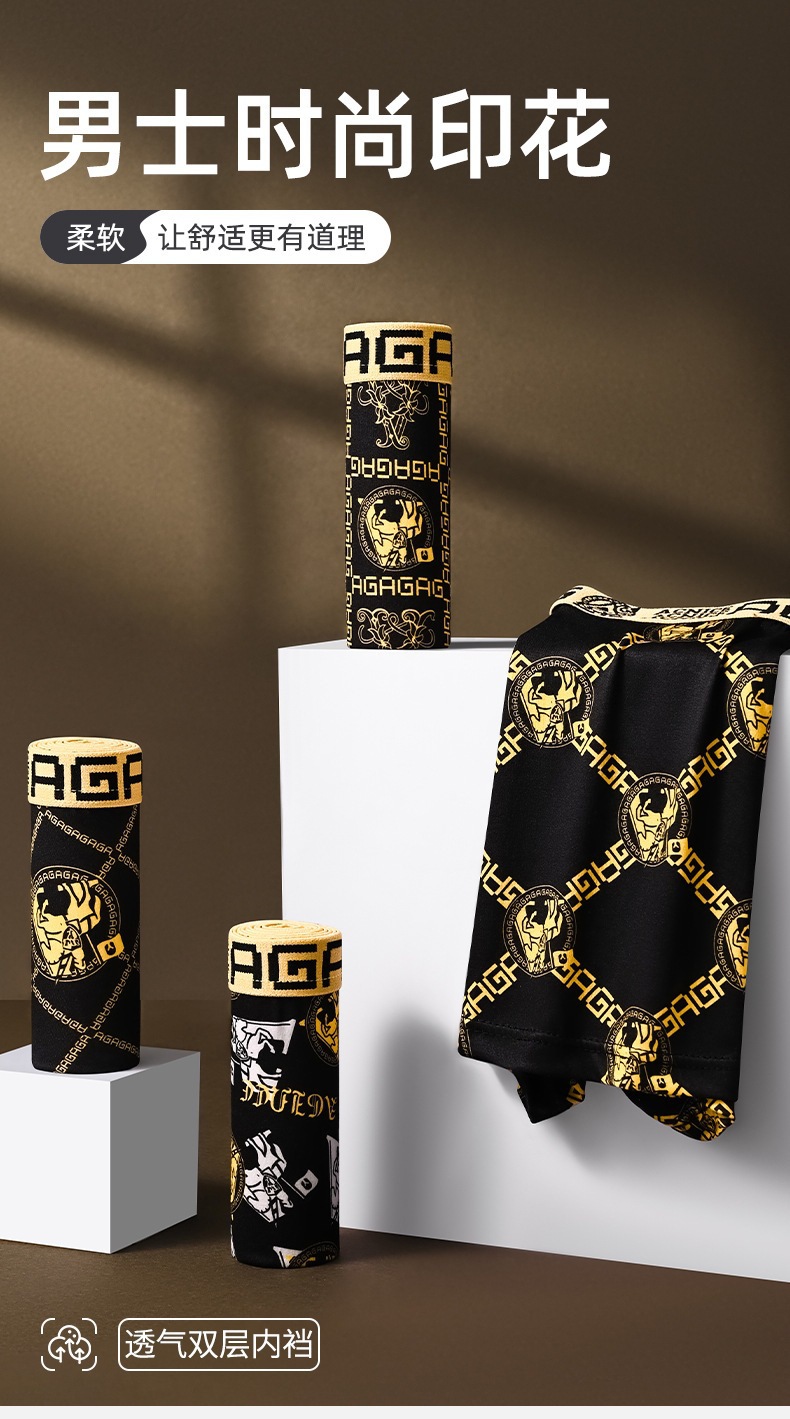 프린트 남성 속옷, 통기성 사각 팬티, 얇은 청소년 남성 트렌디한 대형 블랙 골드 사각 팬티 남성용스토어 가기