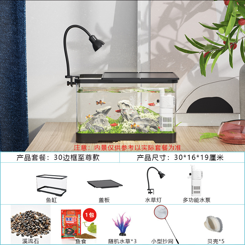 Chuangyao 투명한 시각적 금붕어 탱크 홈 데스크탑 오피스 거실 작은 아크릴 거북이 사육 생태 탱크스토어 가기