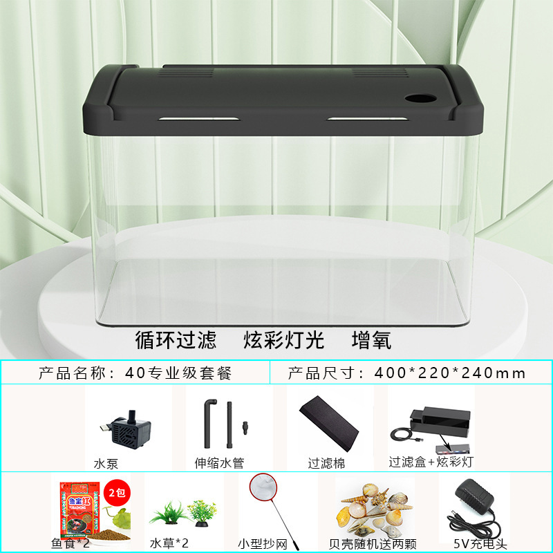• 3세대 블랙 40 전문 패키지 수조 + 화려한 조명 + 워터 펌프 + 필터 박스 + 선물 패키지