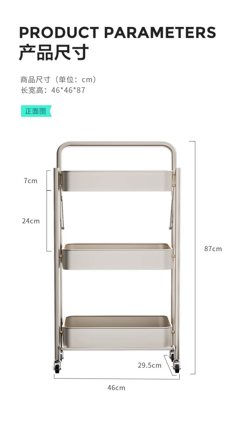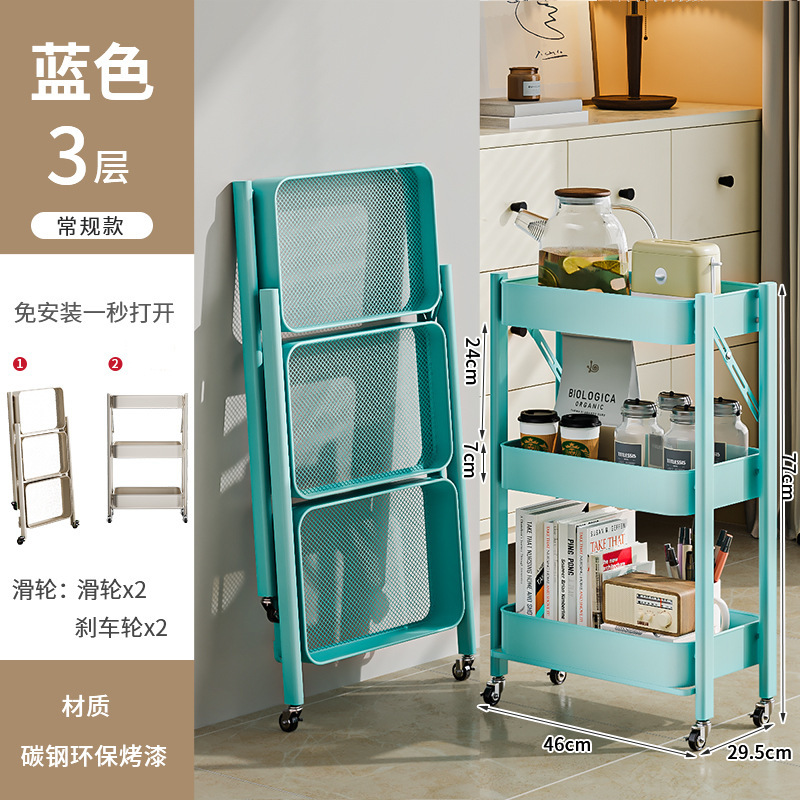 접이식 트롤리 주방 수납 선반 설치가 필요 없는 이동식 가정용 과일 및 야채 책장 잡다한 스낵 수납 선반