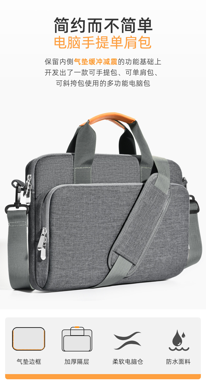 국경 간 비즈니스용 휴대용 가죽 노트북 가방 15.6inch 낙하 방지 및 충격 방지 에어백 싱글 숄더 컴퓨터 라이너 백스토어 가기