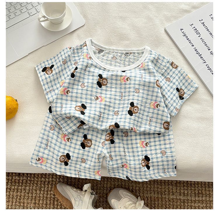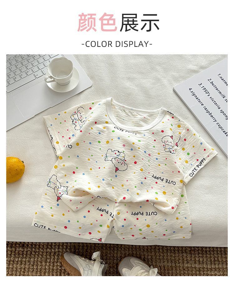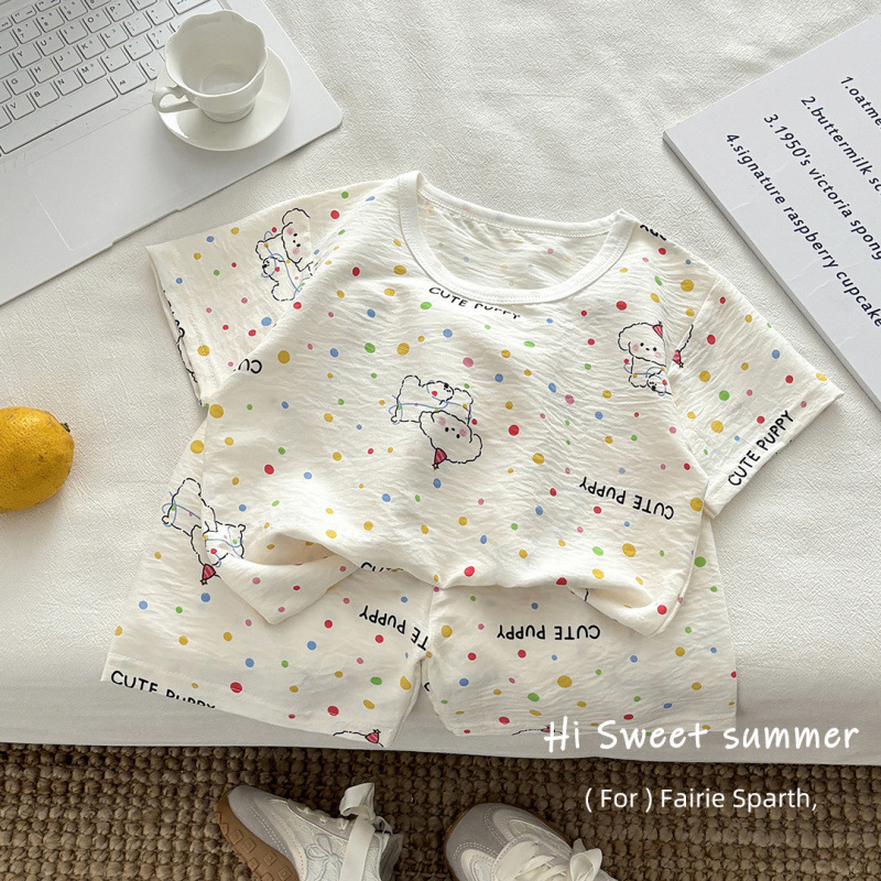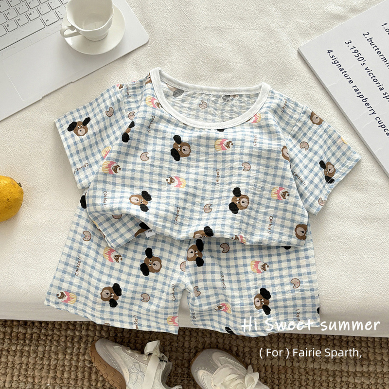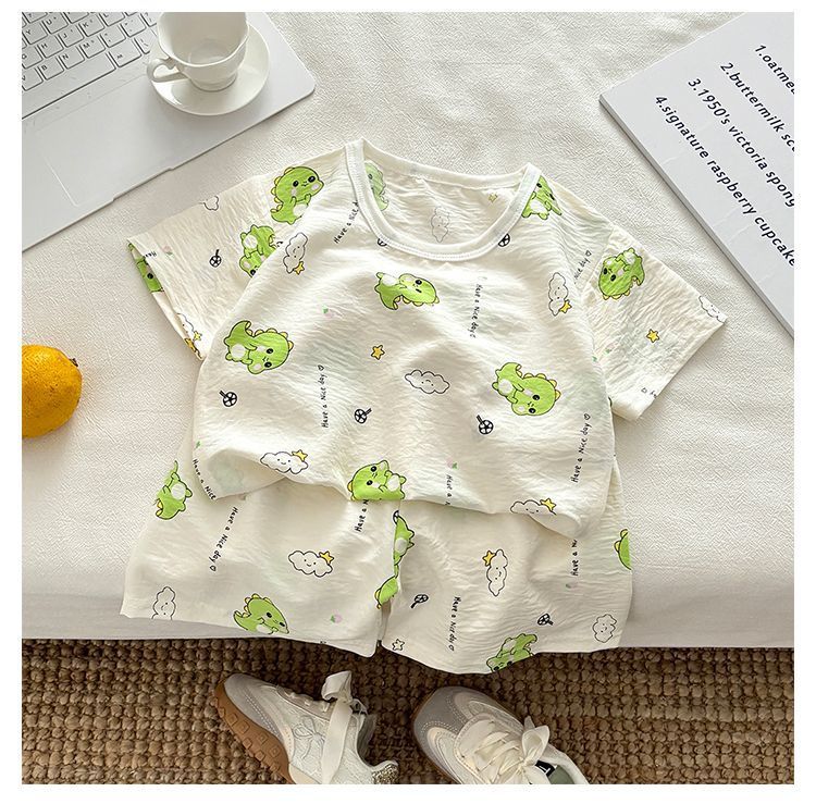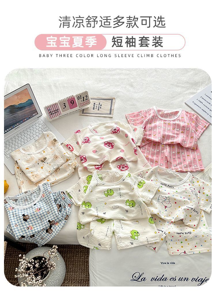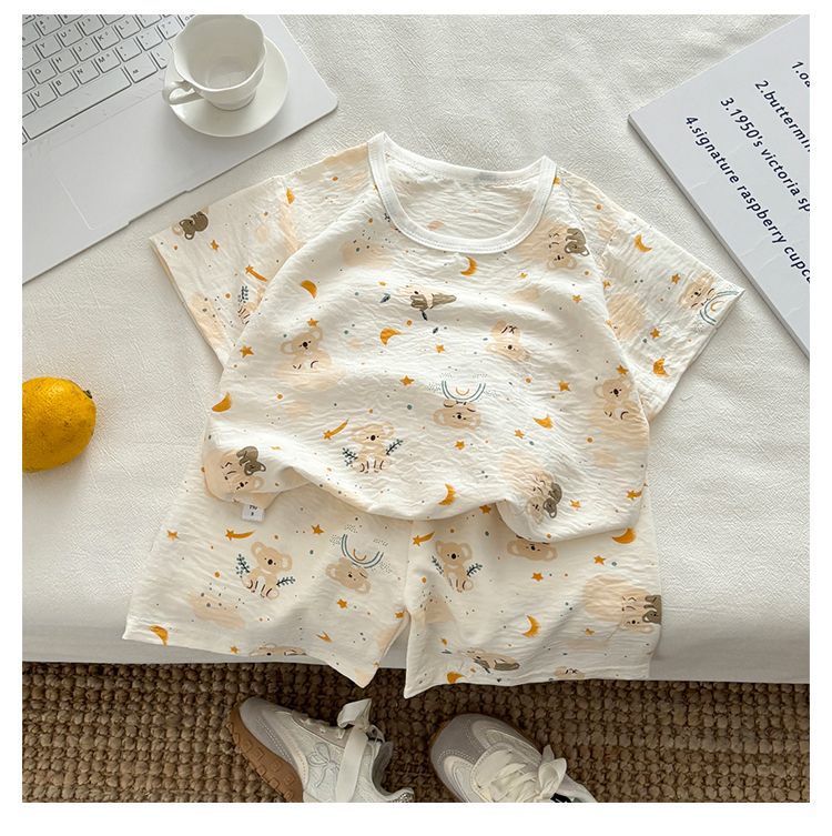 아기 남성과 여성의 구름 면화 반팔 새 슈트 어린이 여름 반바지 에어컨 가정 의류 소녀 얇은 잠옷