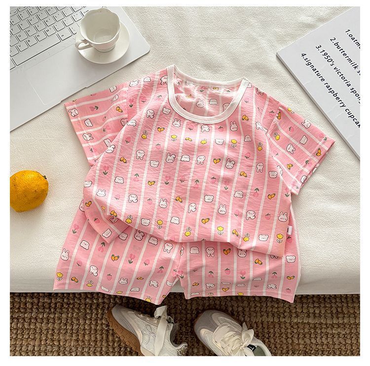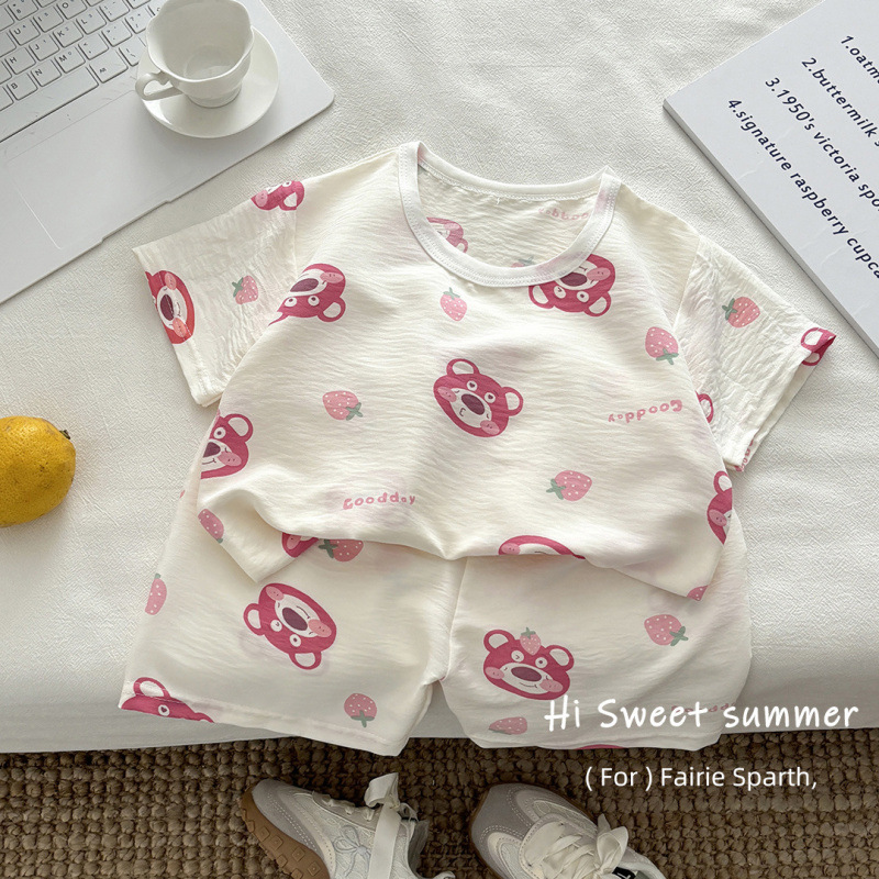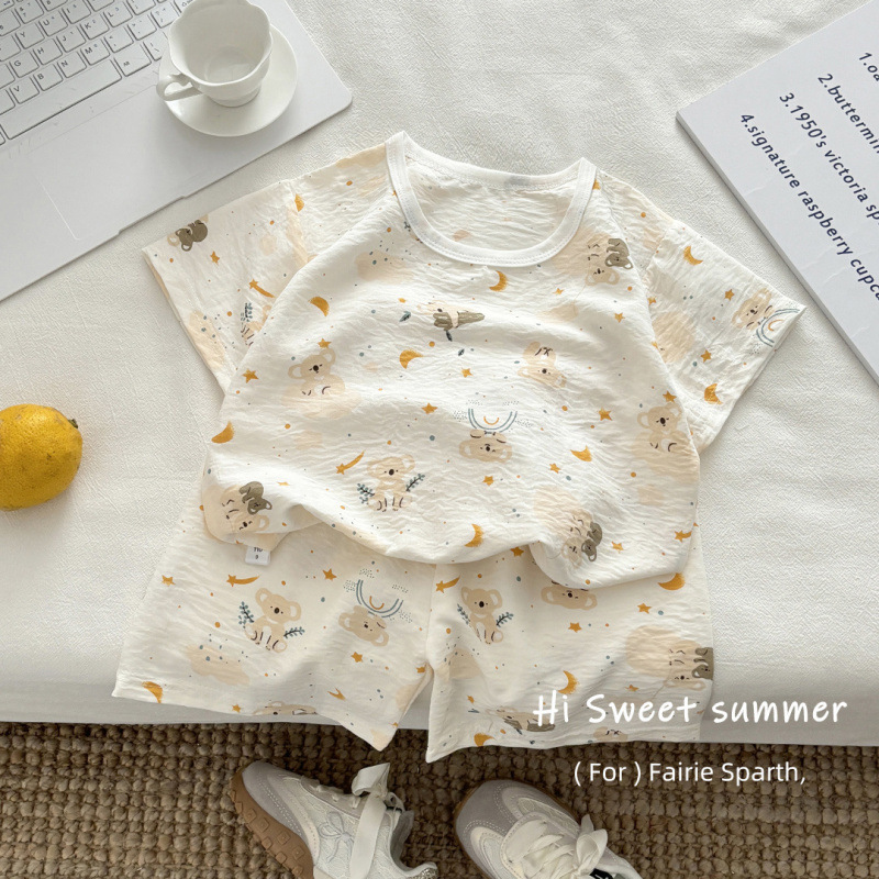아기 남성과 여성의 구름 면화 반팔 새 슈트 어린이 여름 반바지 에어컨 가정 의류 소녀 얇은 잠옷스토어 가기