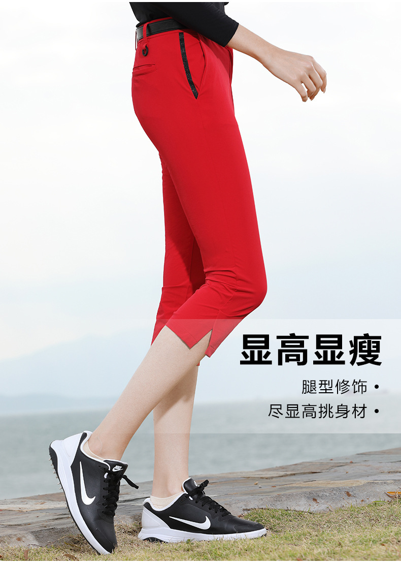 여성용 Taogang 골프 의류 봄 여름 슬림 하이 웨이스트 크롭 팬츠 속건성 편안한 스포츠 캐주얼 바지 골프 바지 중간 바지