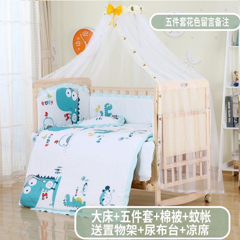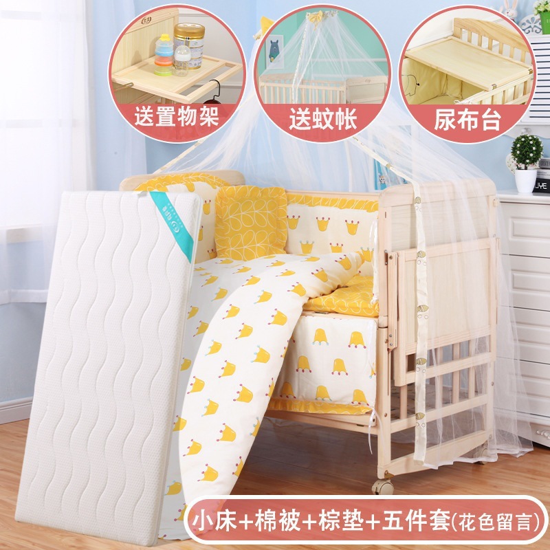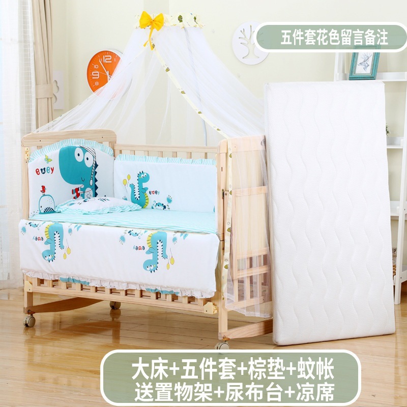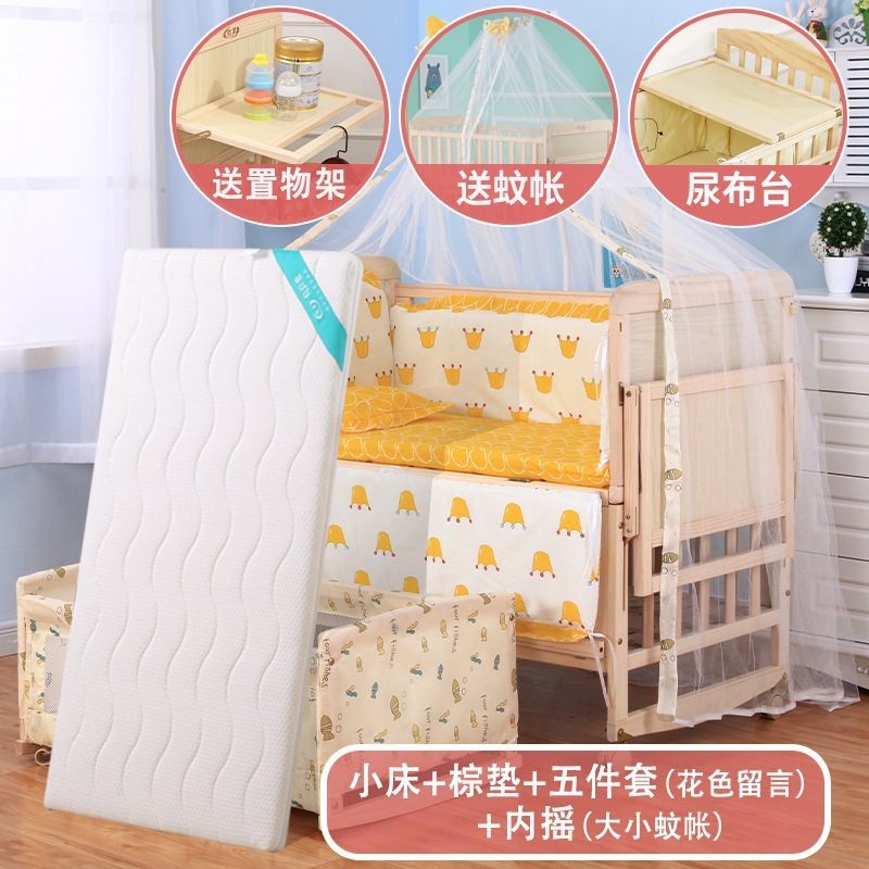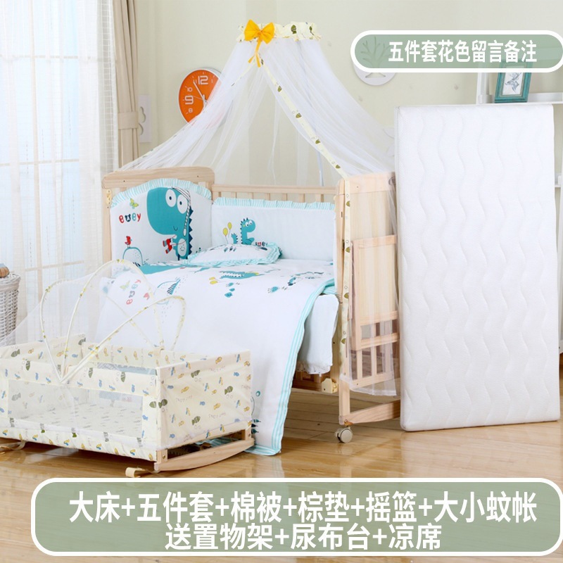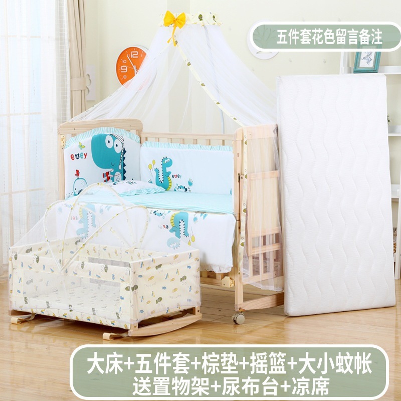 • 침대 + 요람 + 5종세트 + 이불 + 브라운 매트리스