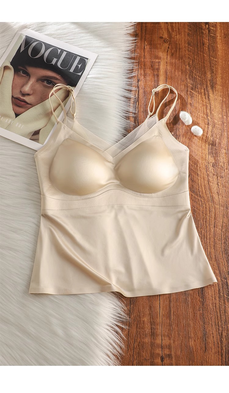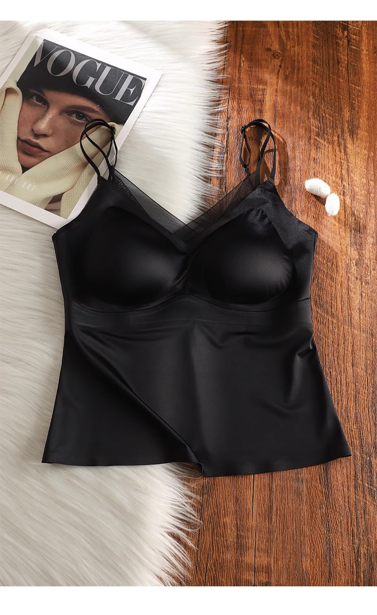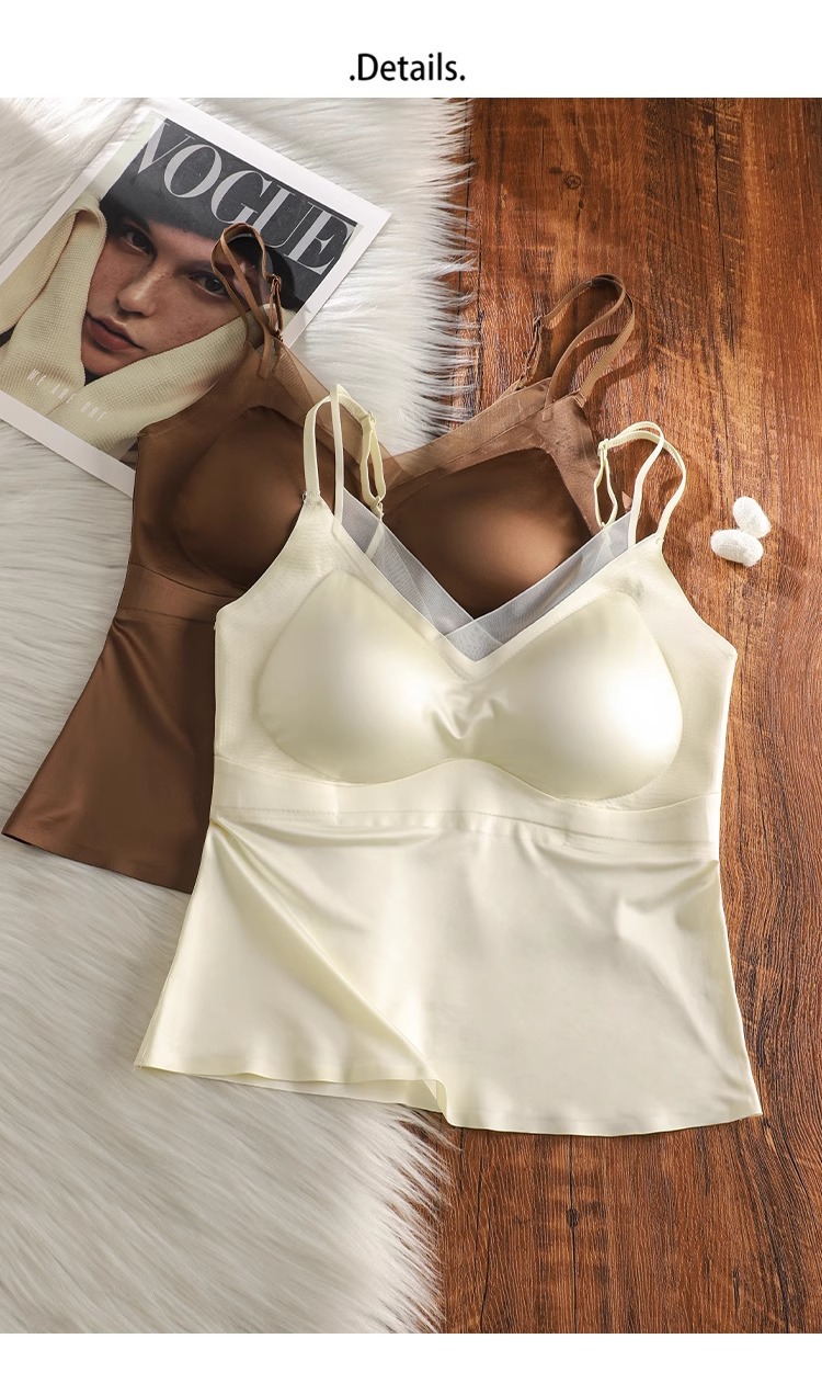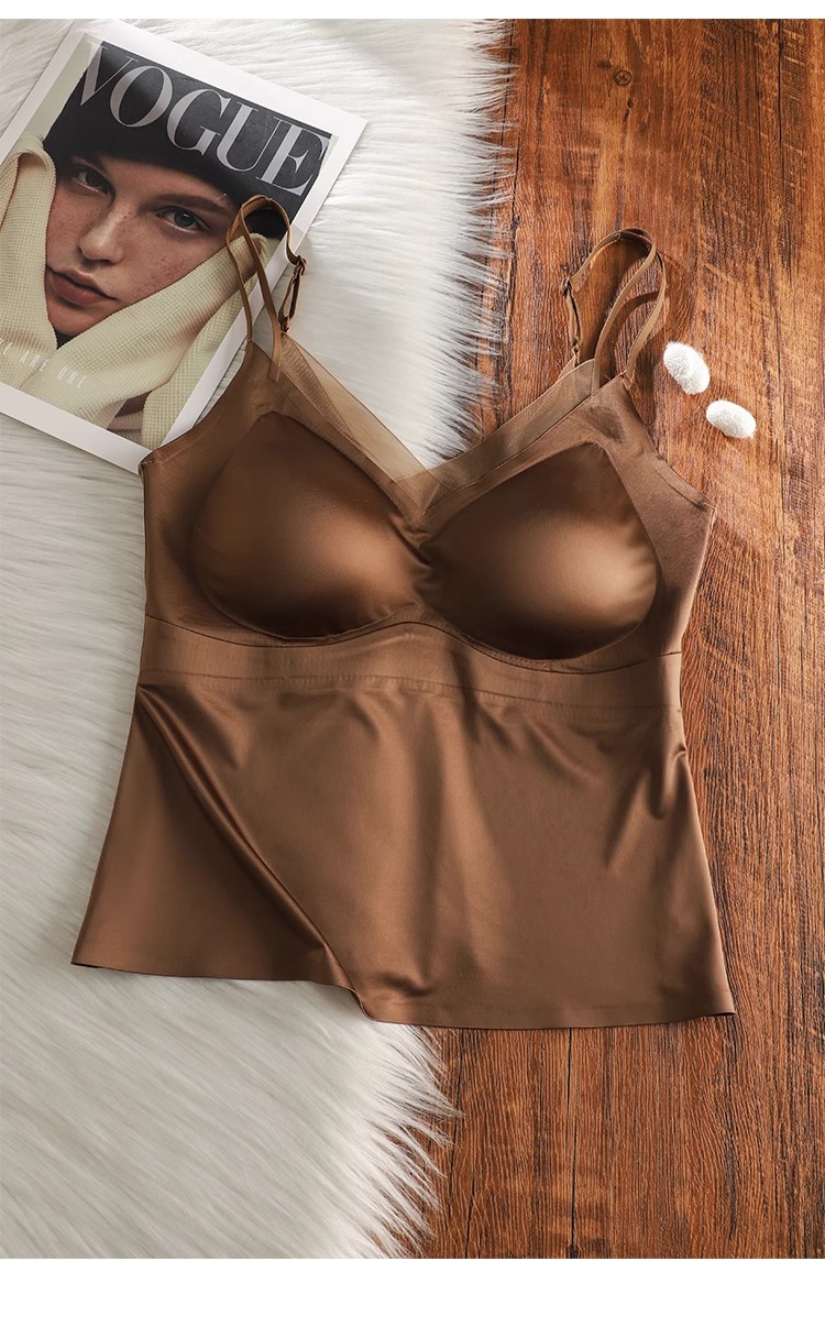 가슴 패드가 내장된 정품 5603 심리스 새틴 슈트는 브라가 없는 투인원 슬링 베스티로 밖에서 착용 가능스토어 가기