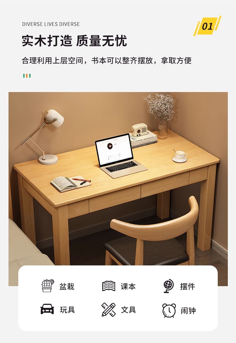 모든 단단한 나무 책상 가정 학생 책상 작은 아파트 현대 간단한 연구 책상 침실 컴퓨터 책상스토어 가기