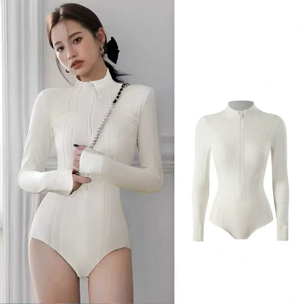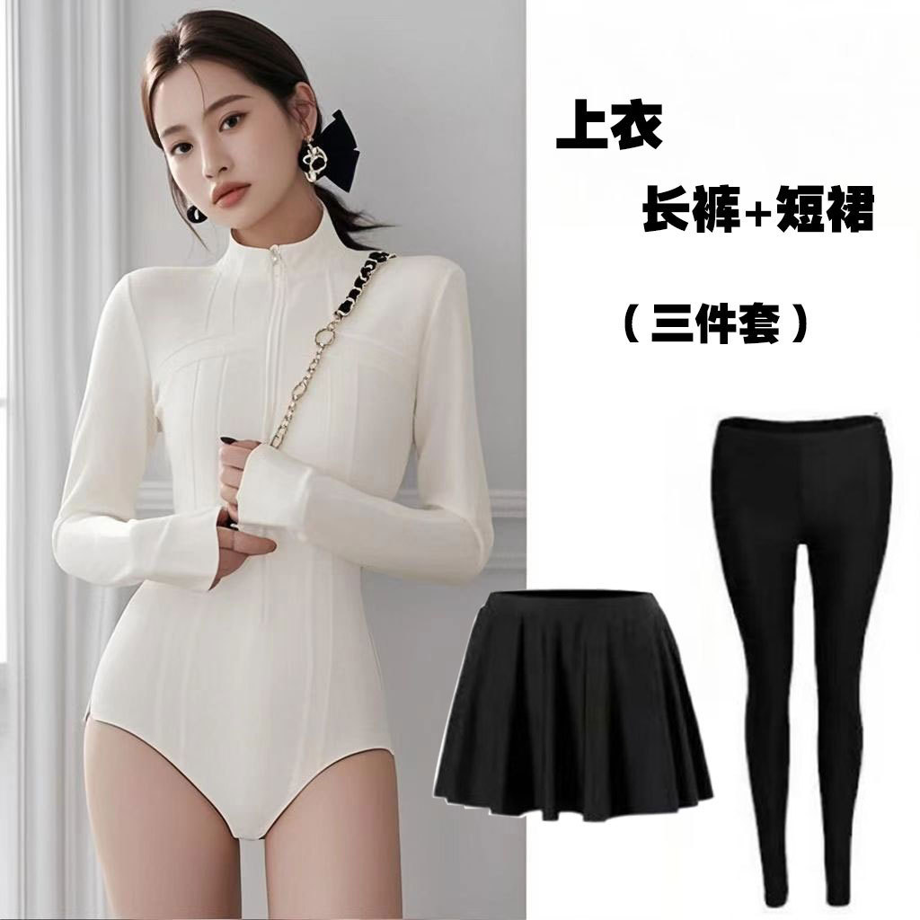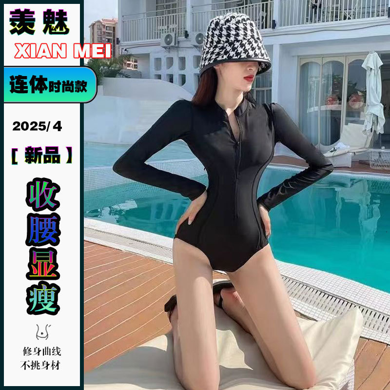 2025 새로운 원피스 수영복 보수적 인 배 커버 긴팔 바지 속건성 슬림 서핑 잠수복 원피스 수영복