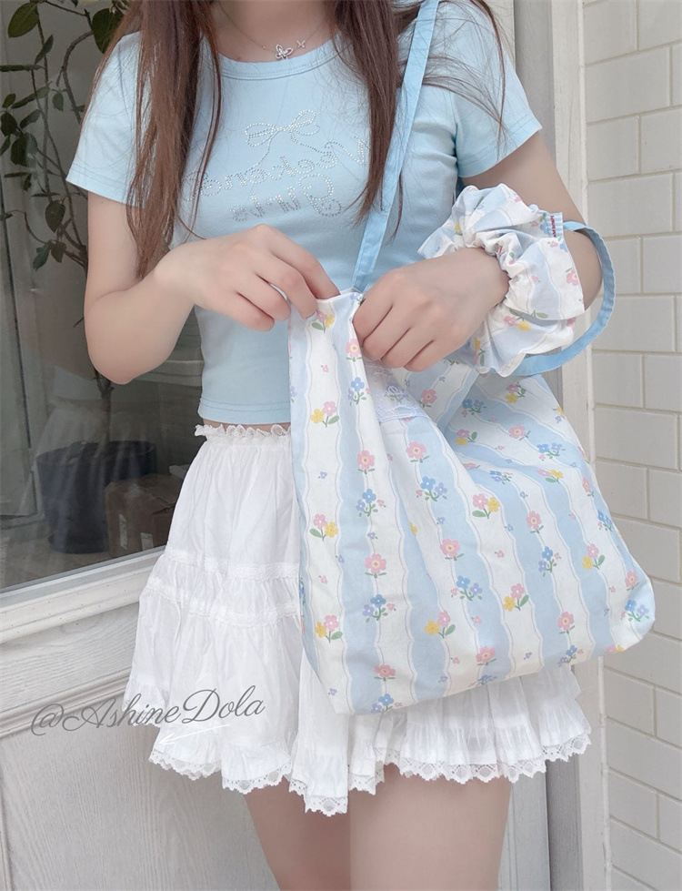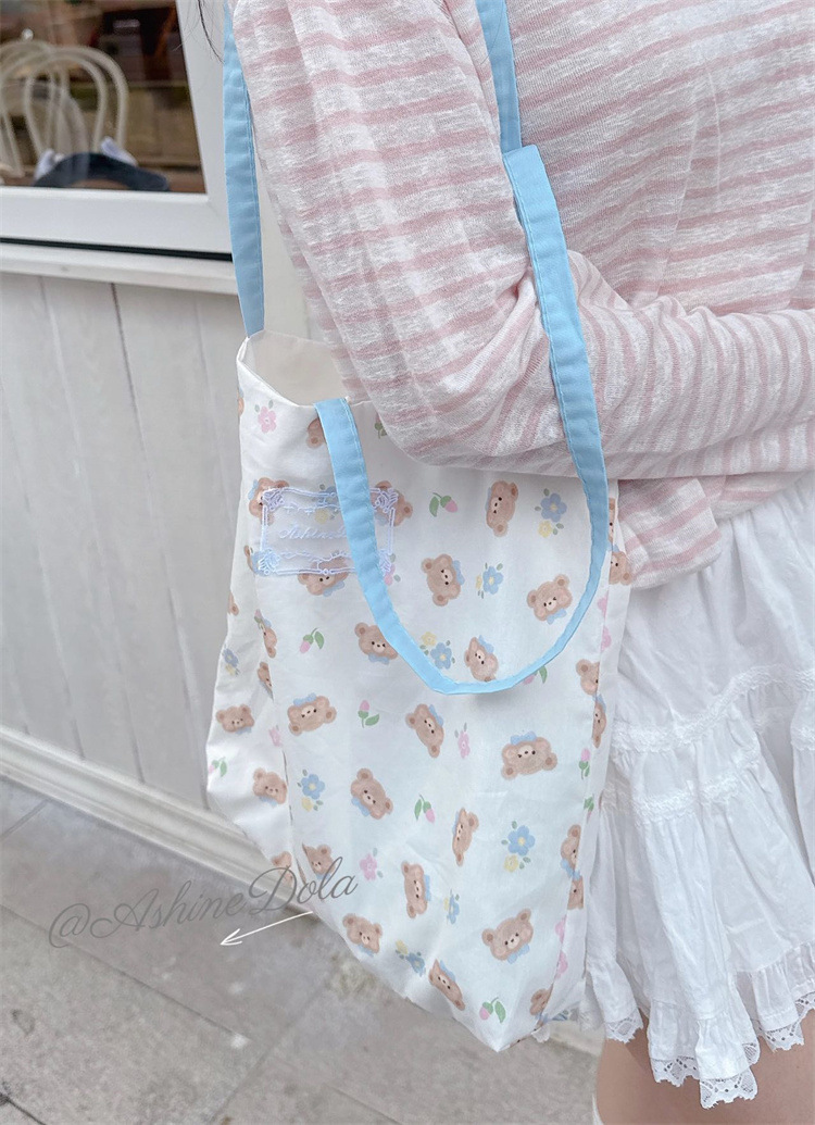 여름 프랑스 꽃 휴대용 가방 대용량 접이식 휴대용 만화 어깨 가방 비치 가방 쇼핑백스토어 가기