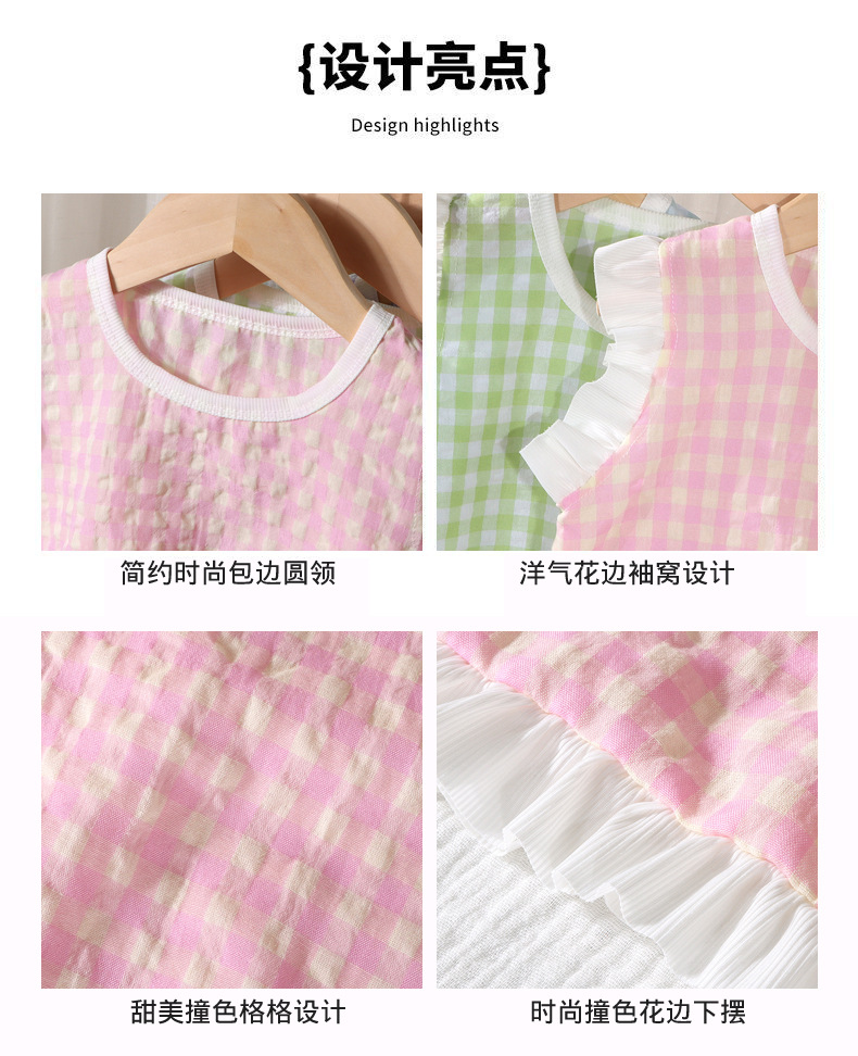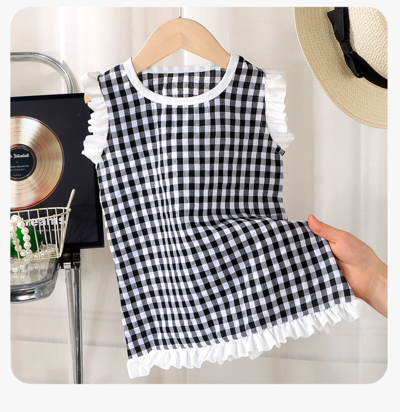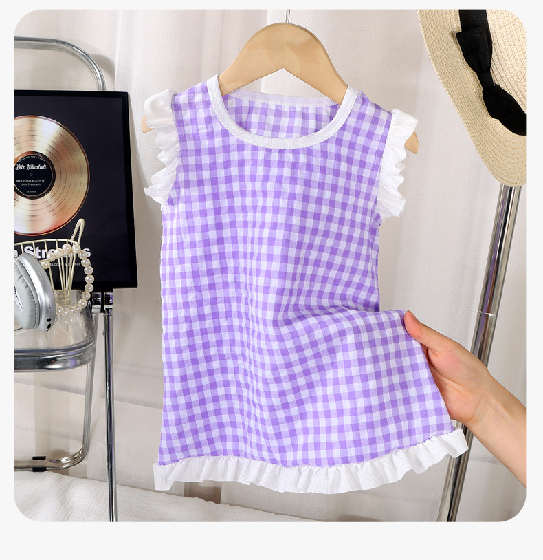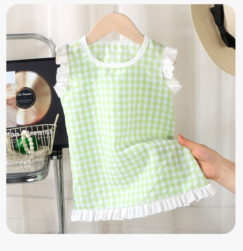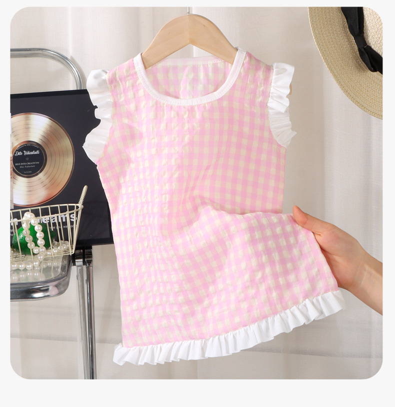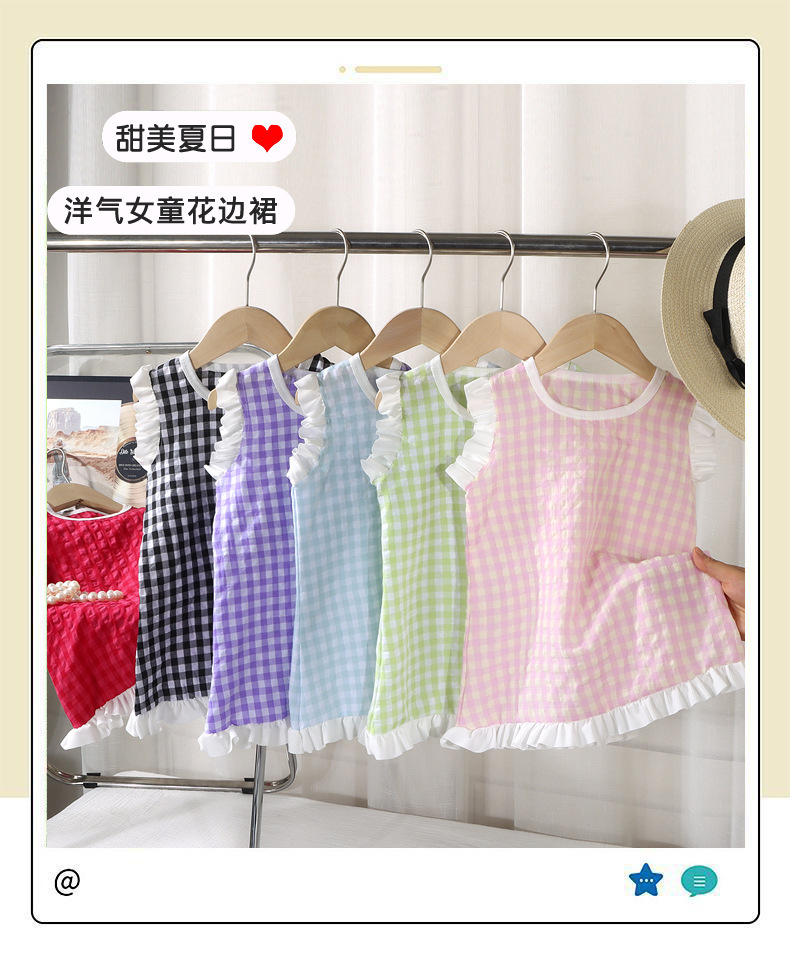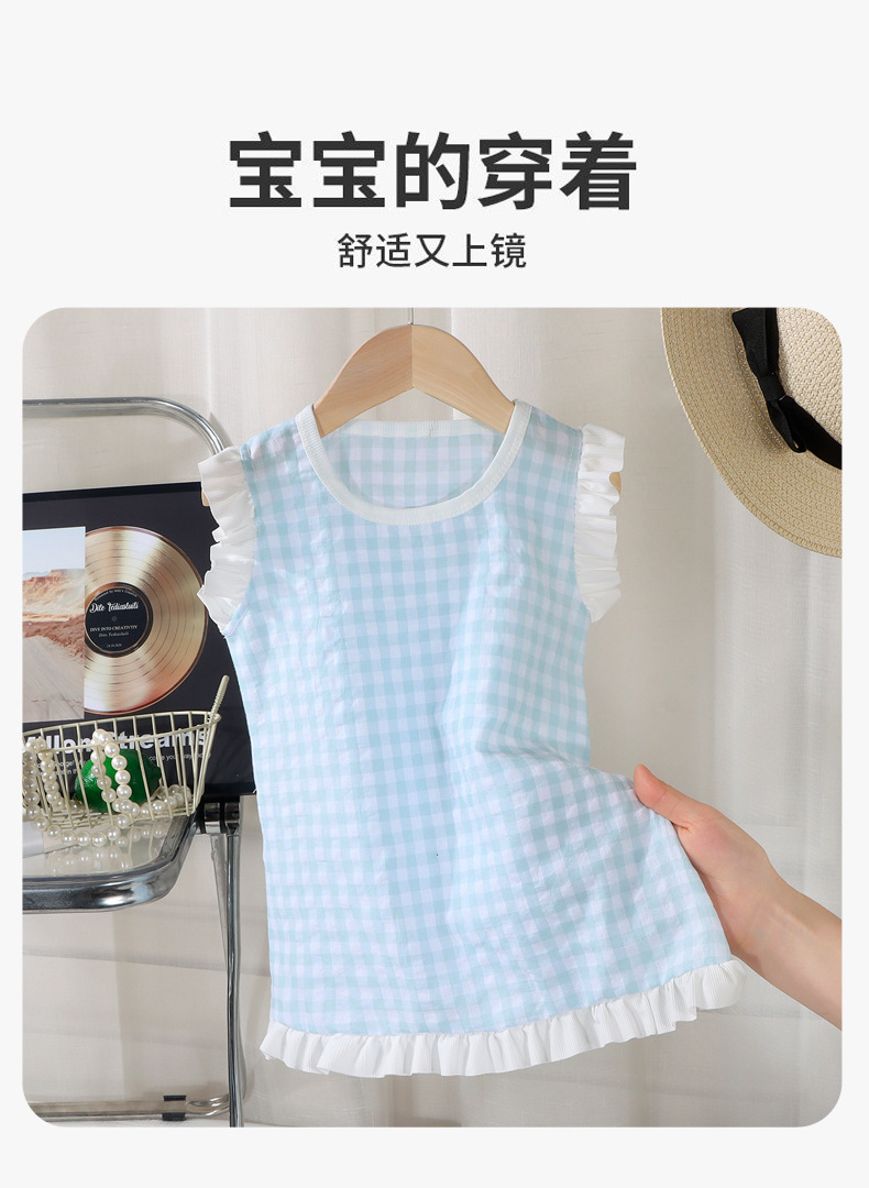 여아 레이스 원피스 여름 아기 플라잉 슬리브 체크무늬 조끼 원피스 어린 소녀 공주풍 원피스 유아용스토어 가기