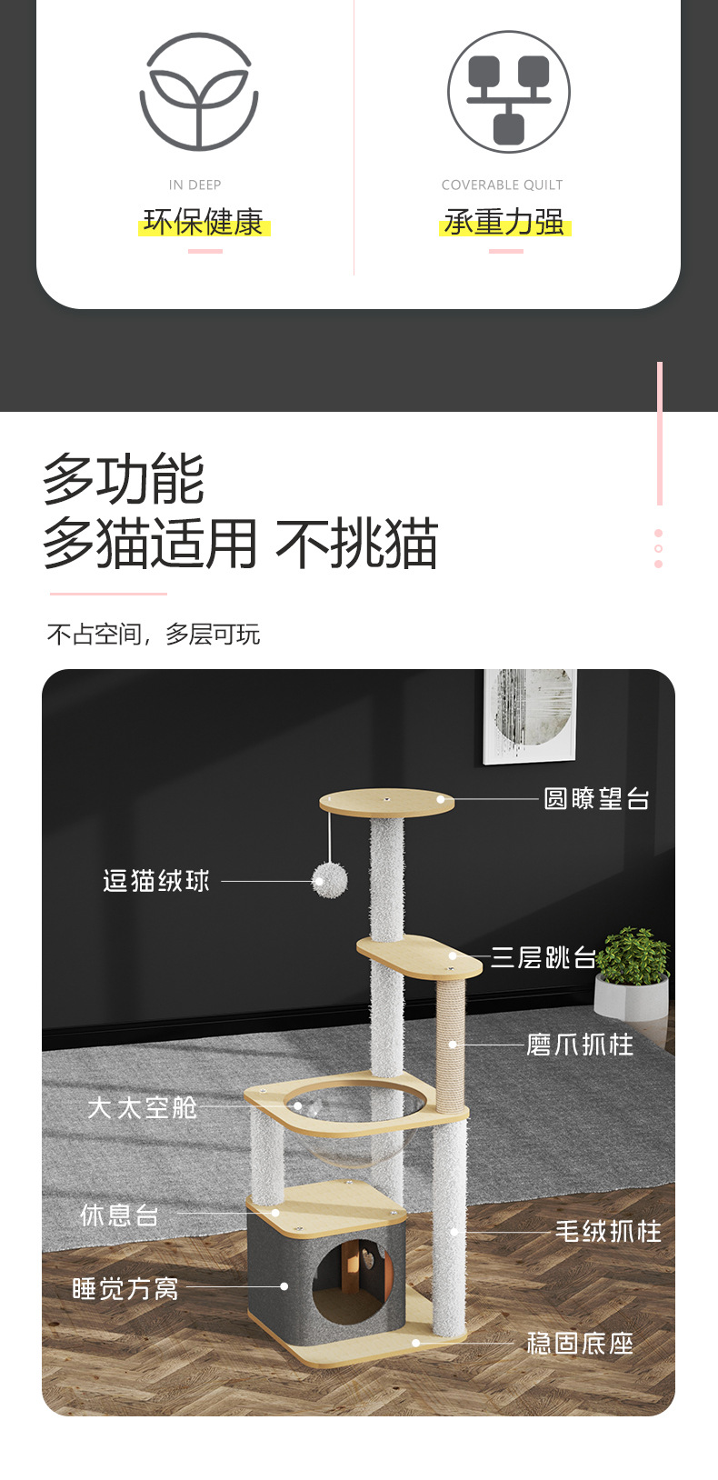 다층 고양이 클라이밍 프레임, 고양이 둥지, 일체형 우주 캡슐 고양이 점프 플랫폼, 사계절 만능 고양이 집, 성인 및 어린 고양이 발톱 연삭 고양이 스크래치 포스트