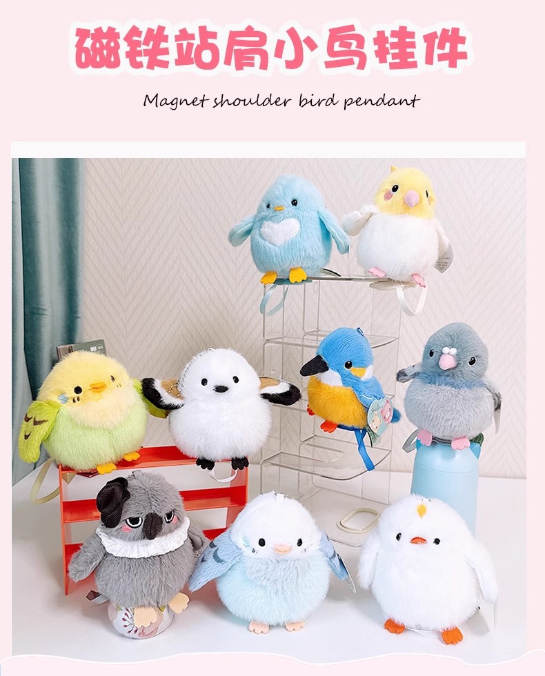 Rabittai 스탠드 숄더 새 앵무새 인형 참새 플러시 장난감 검은 까치 자석 새 어린이 인형 펜던트스토어 가기