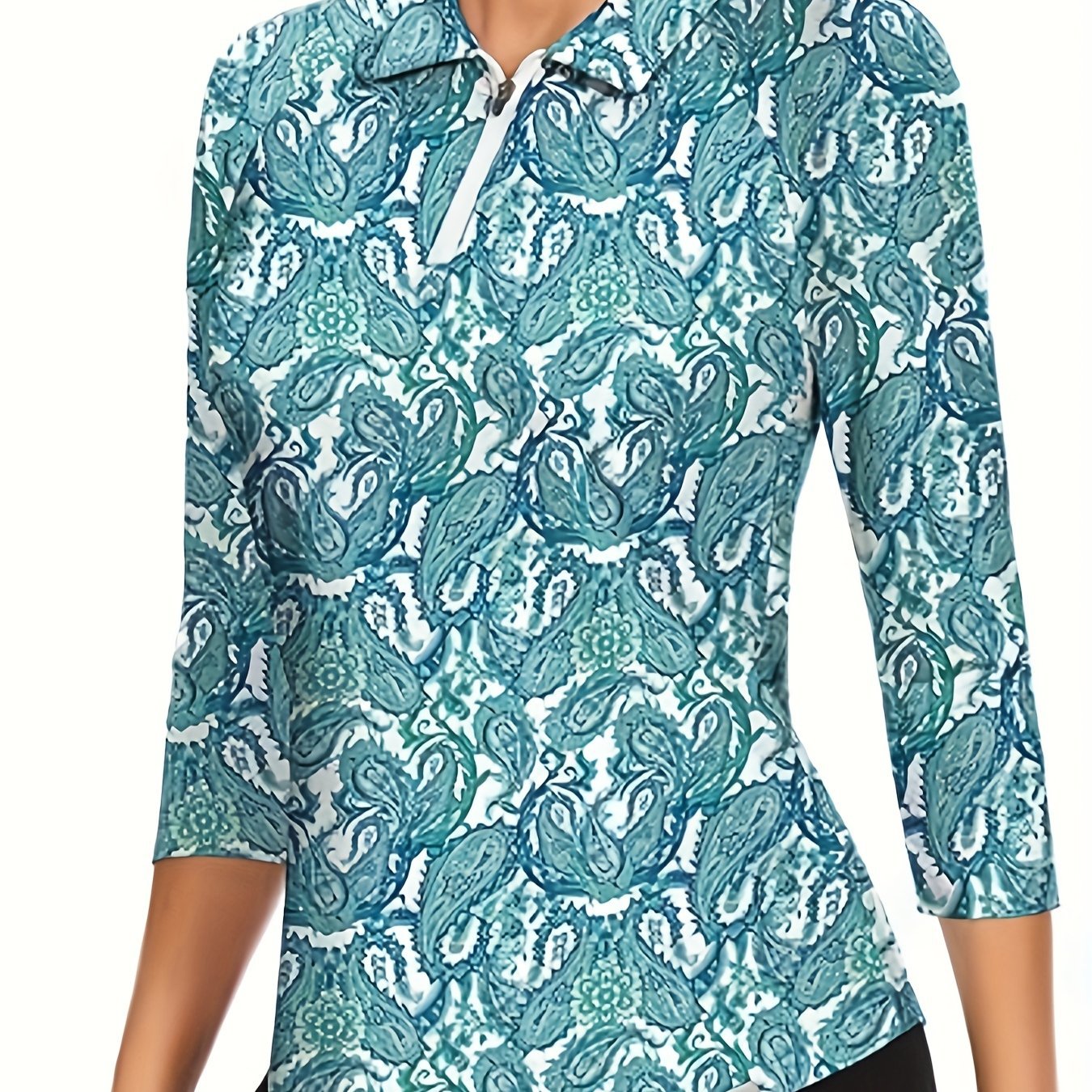 여성용 3 4 슬리브 골프 폴로 셔츠 수분 흡수 롱 크로스보더스토어 가기