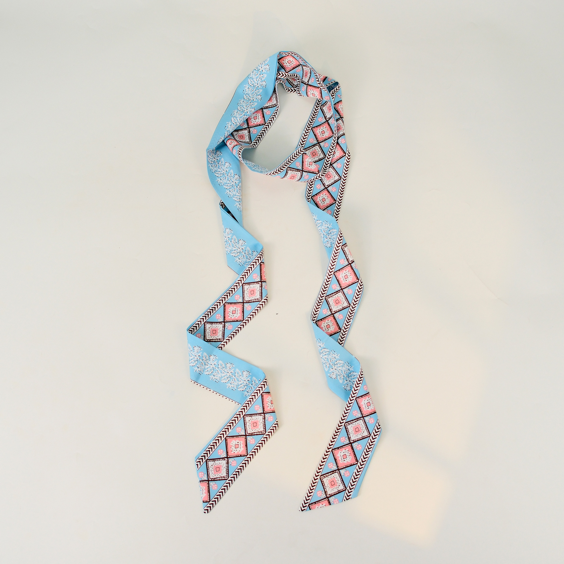 200cm 에스닉 스타일 여성용 길고 얇은 더블 레이어 실크 스카프, 복고풍 플로팅 스카프, 머리띠, 가방 스트랩