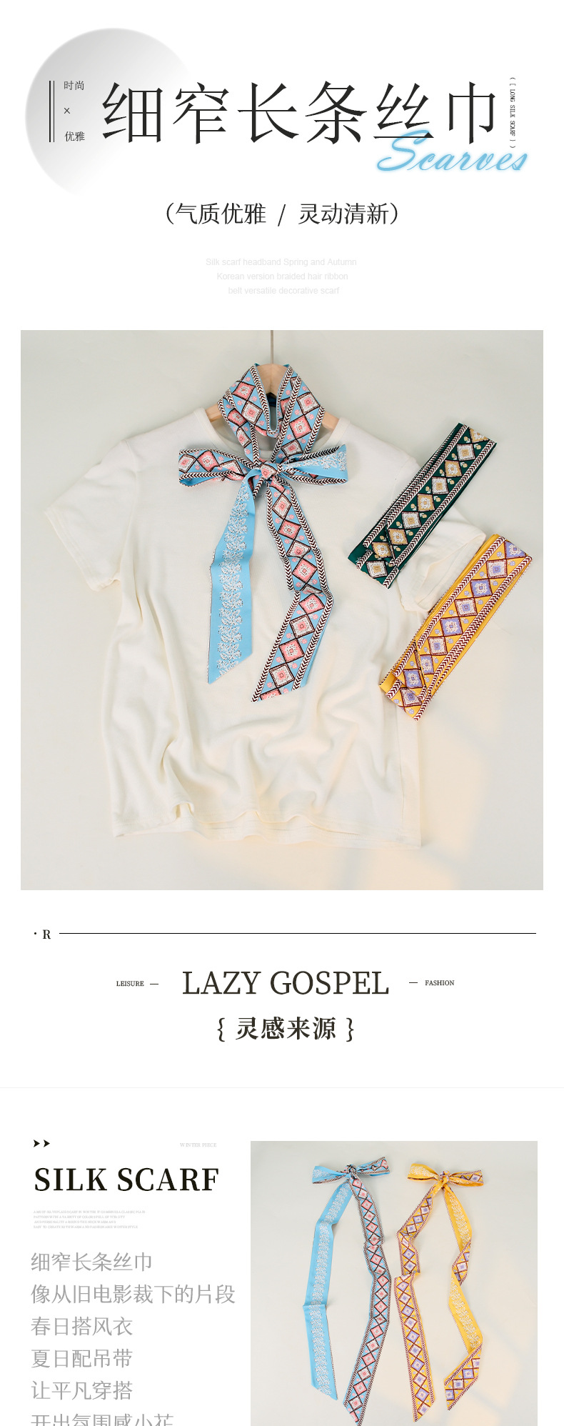 200cm 에스닉 스타일 여성용 길고 얇은 더블 레이어 실크 스카프, 복고풍 플로팅 스카프, 머리띠, 가방 스트랩스토어 가기