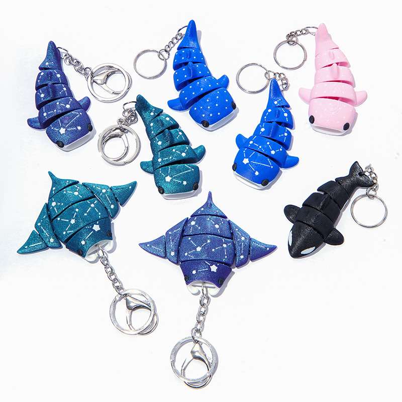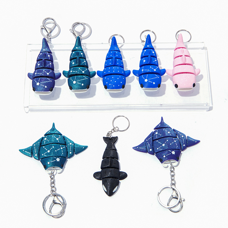 국경 간 다색 3D 인쇄 인기 장난감 모델 별이 빛나는 하늘 상어 장식품 시뮬레이션 모델 도매 키 체인스토어 가기