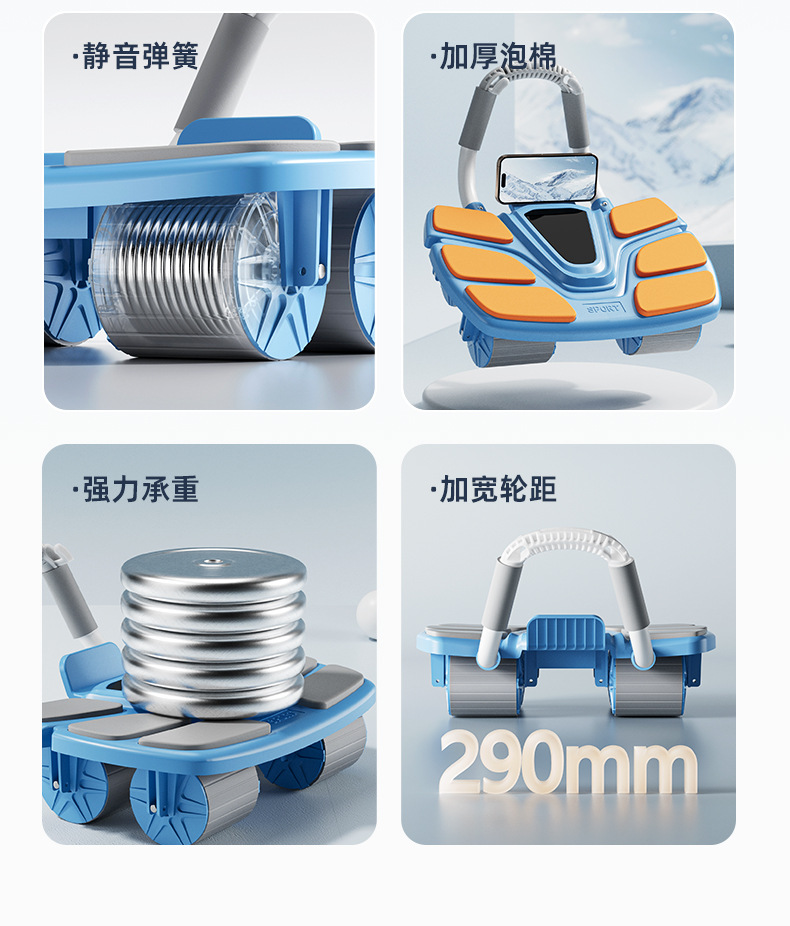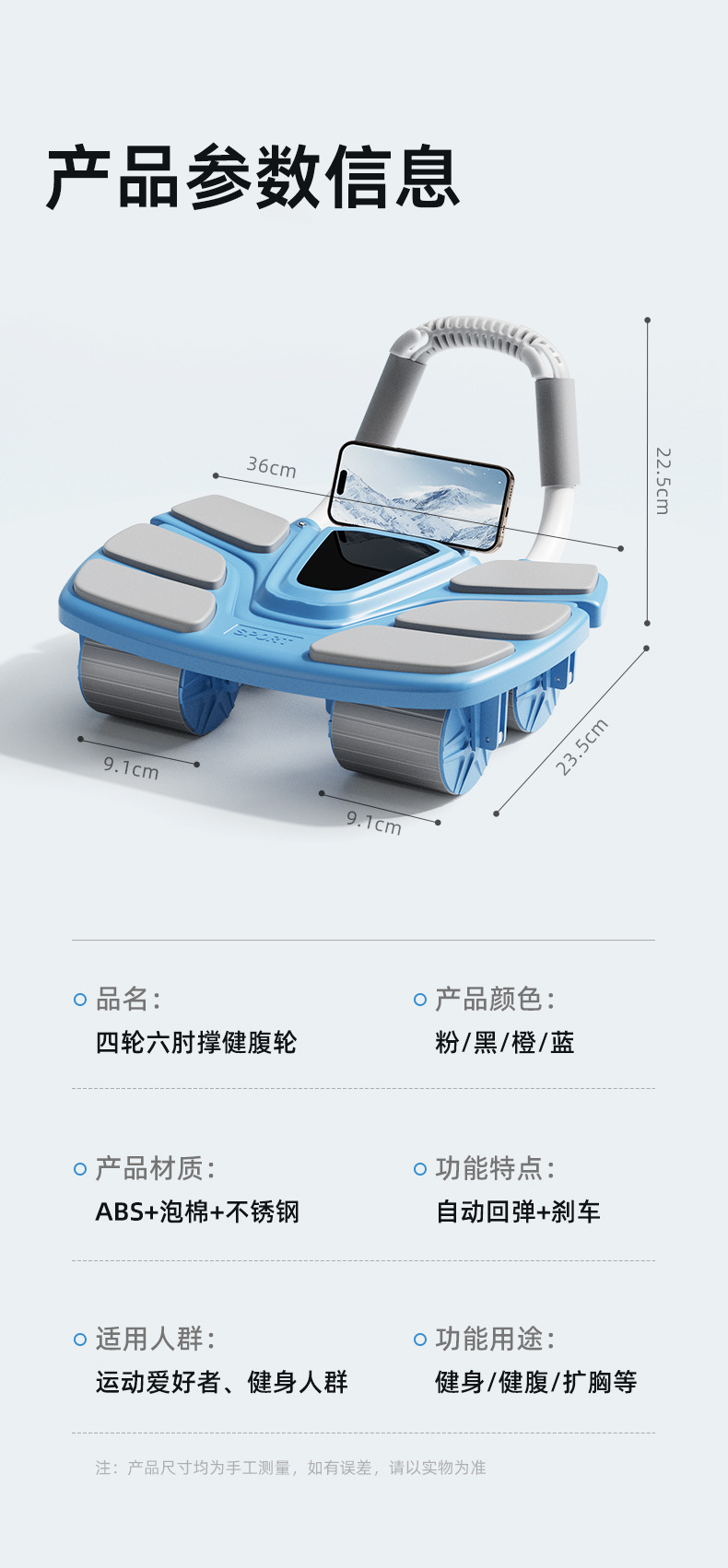 6륜 복근 휠, 자동 리바운드 복근 트레이닝 도구, 플랫 서포트, 남성용 복부 슬리밍 피트니스 장비