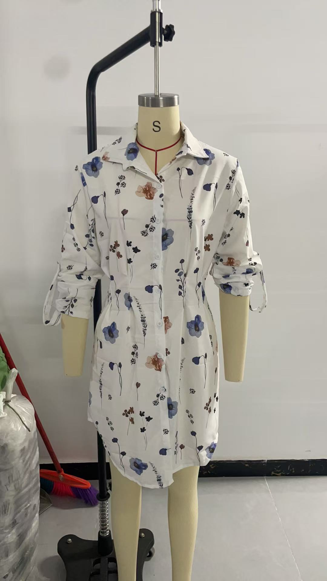 2025 Amazon Independent Station 대외 무역 유럽과 미국의 국경 간 새로운 꽃 패턴 여성 긴팔 셔츠 드레스스토어 가기