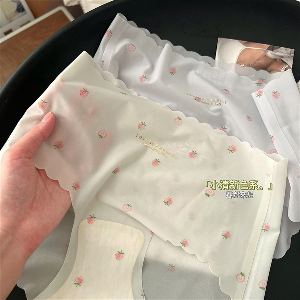 딸기 초박형 여성 속옷 여성 원활한 얼음 실크 소녀 얇은 속건성 학생 순수 코튼 중간 허리 팬티스토어 가기