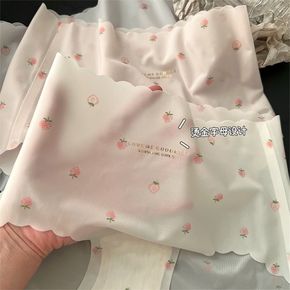 딸기 초박형 여성 속옷 여성 원활한 얼음 실크 소녀 얇은 속건성 학생 순수 코튼 중간 허리 팬티
