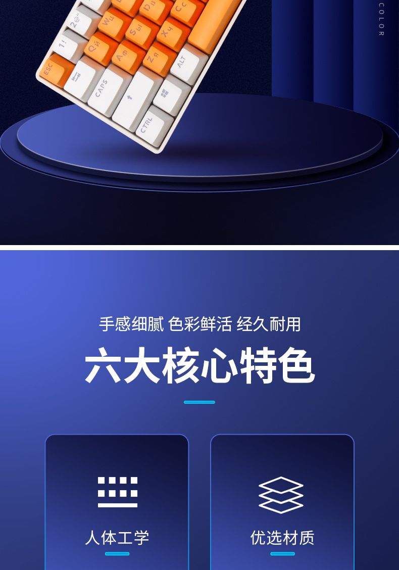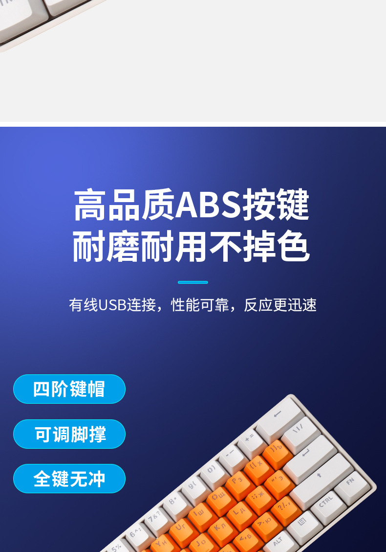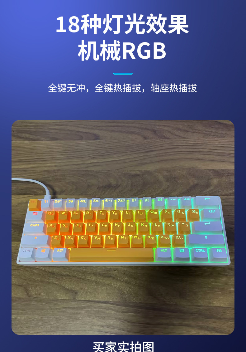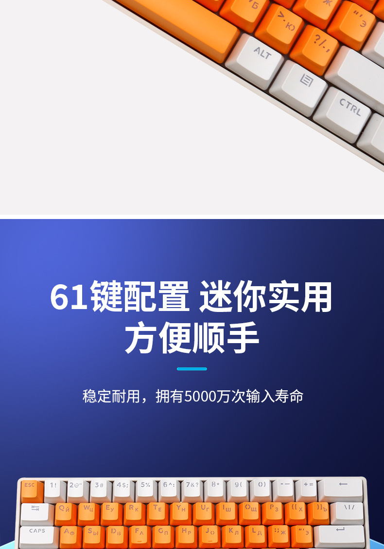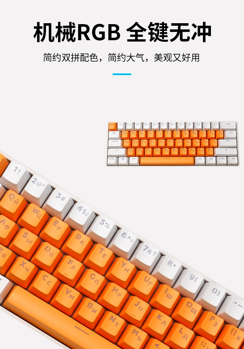 K61 키 구성은 높은 외관을 갖춘 러시아어 이중 색상 기계식 키보드입니다. 내마모성, 내구성, 퇴색 방지, 편리하고 실용적인 키보드입니다.스토어 가기