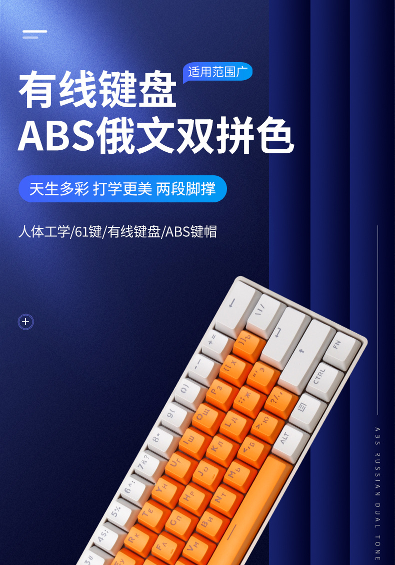 K61 키 구성은 높은 외관을 갖춘 러시아어 이중 색상 기계식 키보드입니다. 내마모성, 내구성, 퇴색 방지, 편리하고 실용적인 키보드입니다.