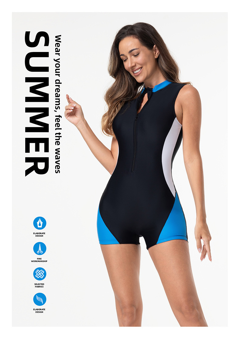 运动风格欧美连体衣拉链修身运动泳衣新款紧身女装跨境亚马逊