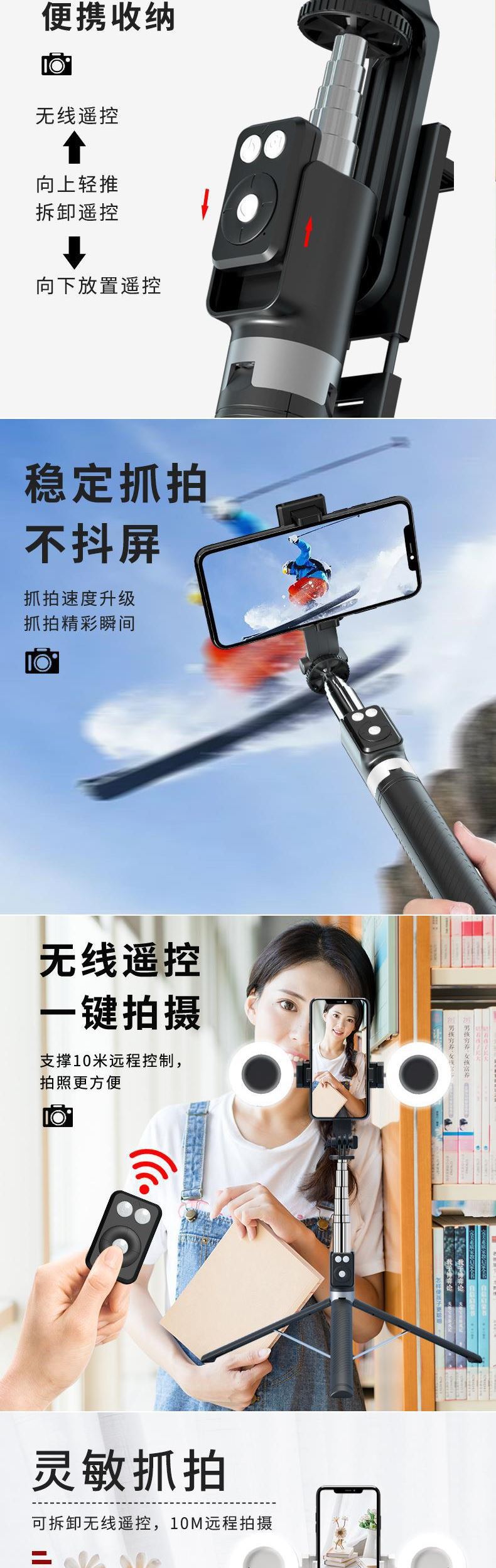 새로운 A12 다기능 셀카봉 1.7m 블루투스 틱톡 원격 제어 라이브 방송 플로어 삼각대스토어 가기