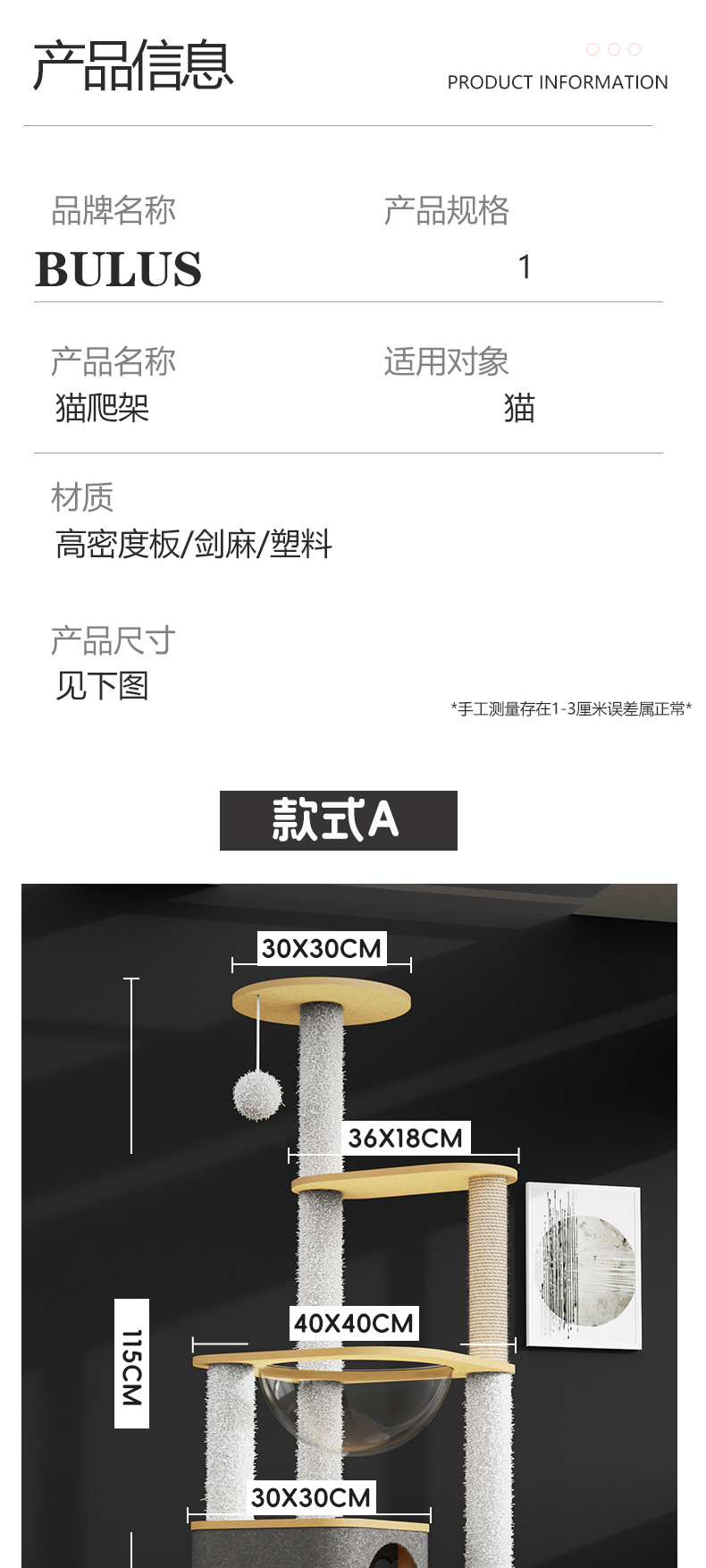 고양이 빌라, 고양이 둥지, 일체형 우주 캡슐, 사마귀 기둥, 부스러기가 없는 발톱 연삭, 새끼 고양이 등반 장난감, 고양이 등반 프레임 도매스토어 가기