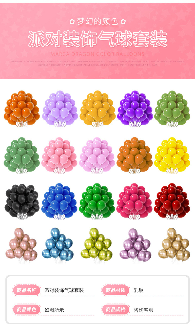 국경 간 풍선 세트 10inch 생일 장식 세트 풍선 체인 파티 웨딩 마카롱 레트로 풍선 도매스토어 가기