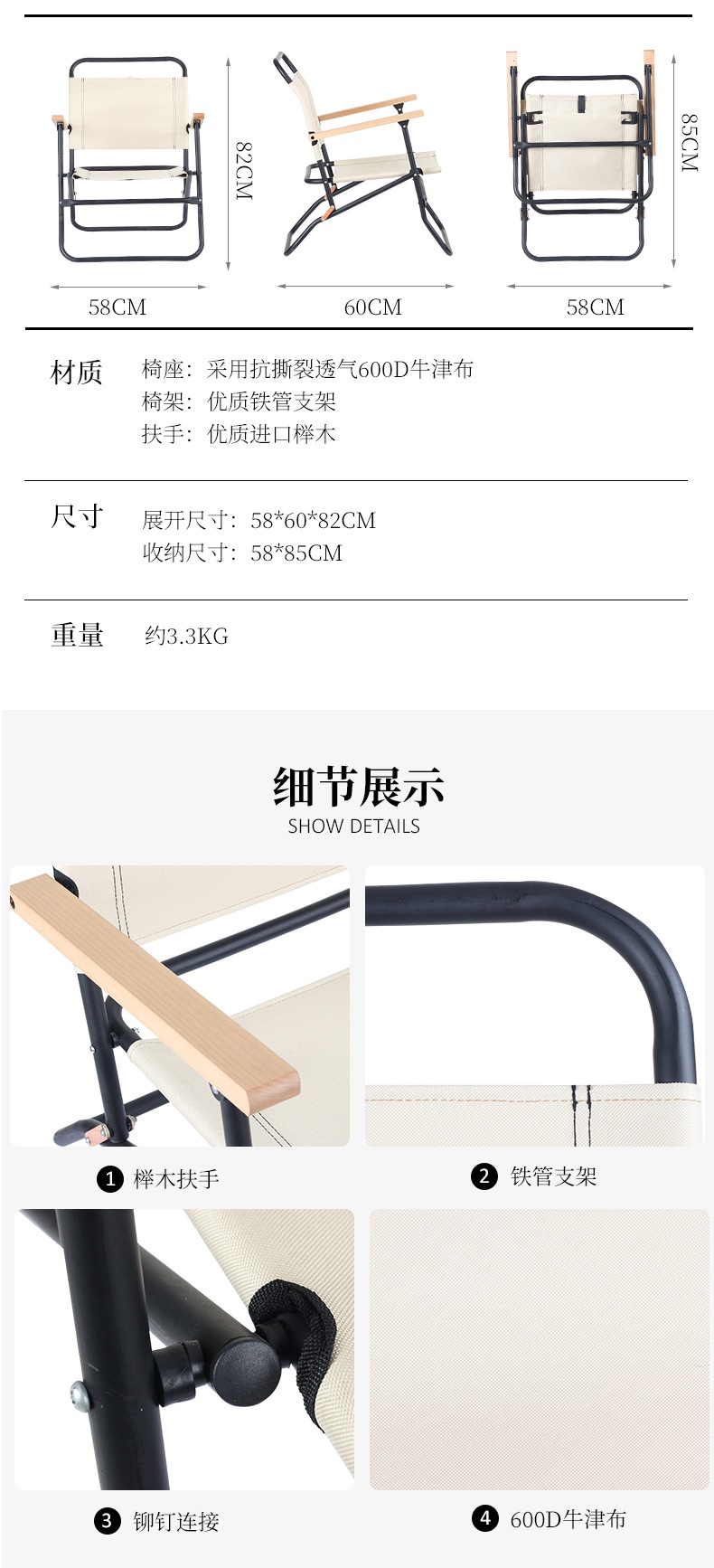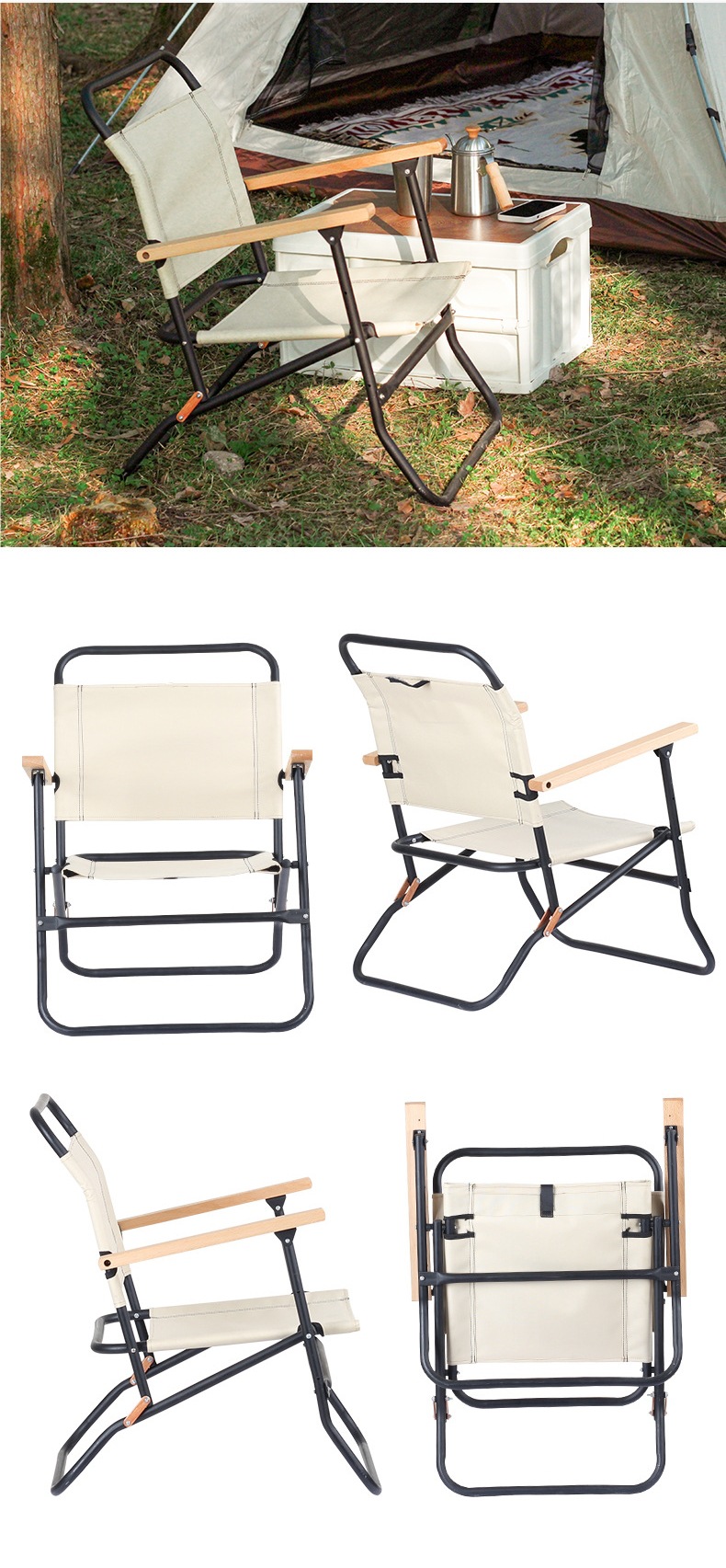 국경 간 한국 나무 팔걸이 로버스터 의자 해변 캠핑 의자 금속 철 파이프 캠핑 의자 야외 휴대용 접이식 의자스토어 가기