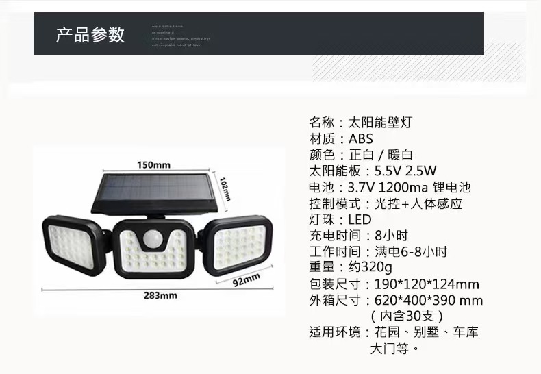 국경 간 새로운 LED 태양 벽 램프 인체 유도 야외 도어 램프 회전 정원 램프 방수 조명 가로등