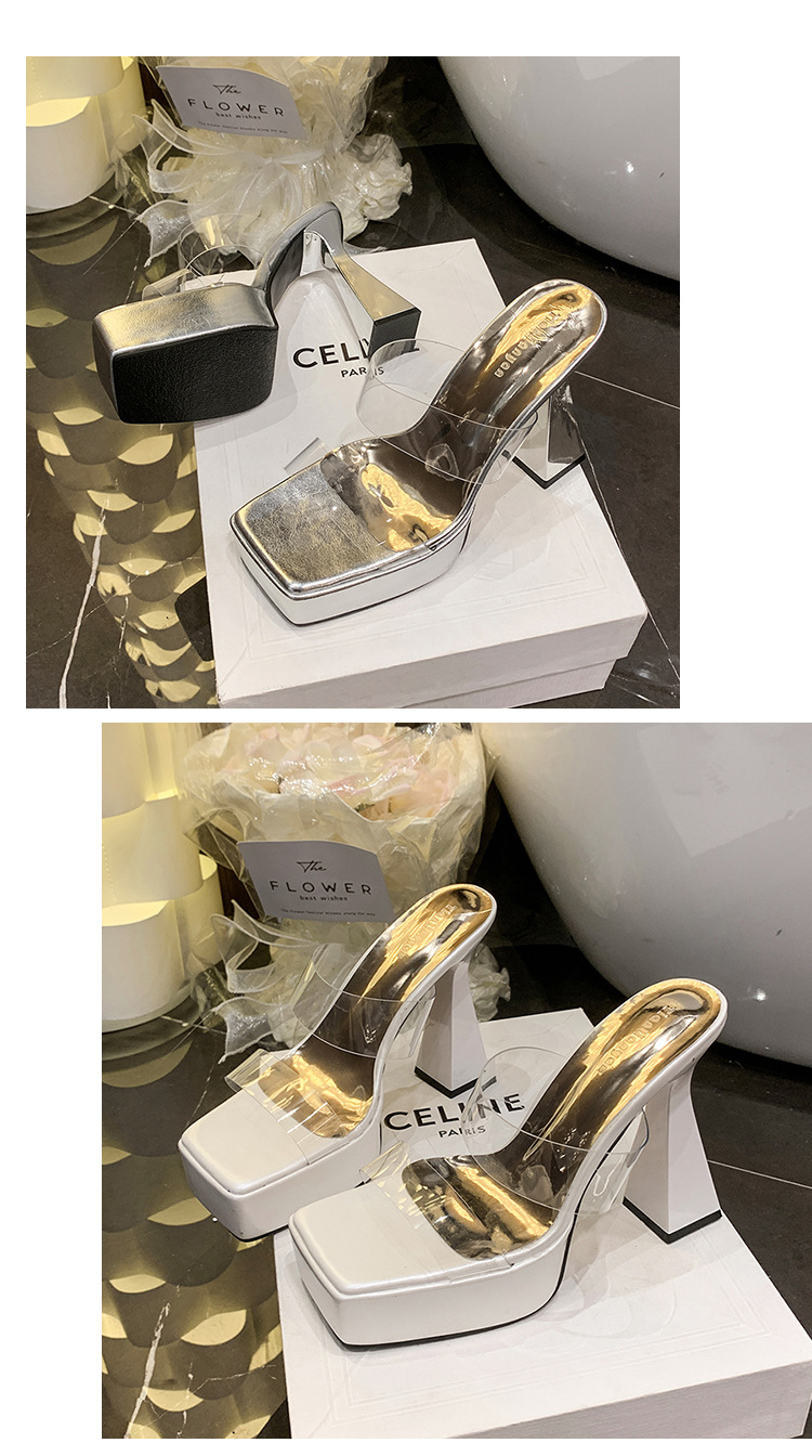 패션 모델 패션쇼 두꺼운 밑창 방수 플랫폼 투명 벨트 섹시한 나이트 클럽 두꺼운 굽 슈퍼 하이힐 여성 신발 원 스트랩스토어 가기