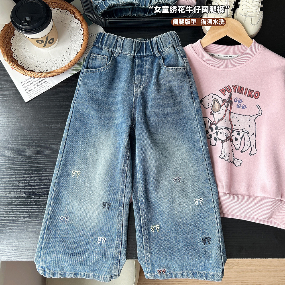 새로운 가을 여아 와이드 청바지, 봄 가을 새로운 스타일, 여아, 중년 가을 의류, 아동 인터넷 연예인 캐주얼 바지스토어 가기