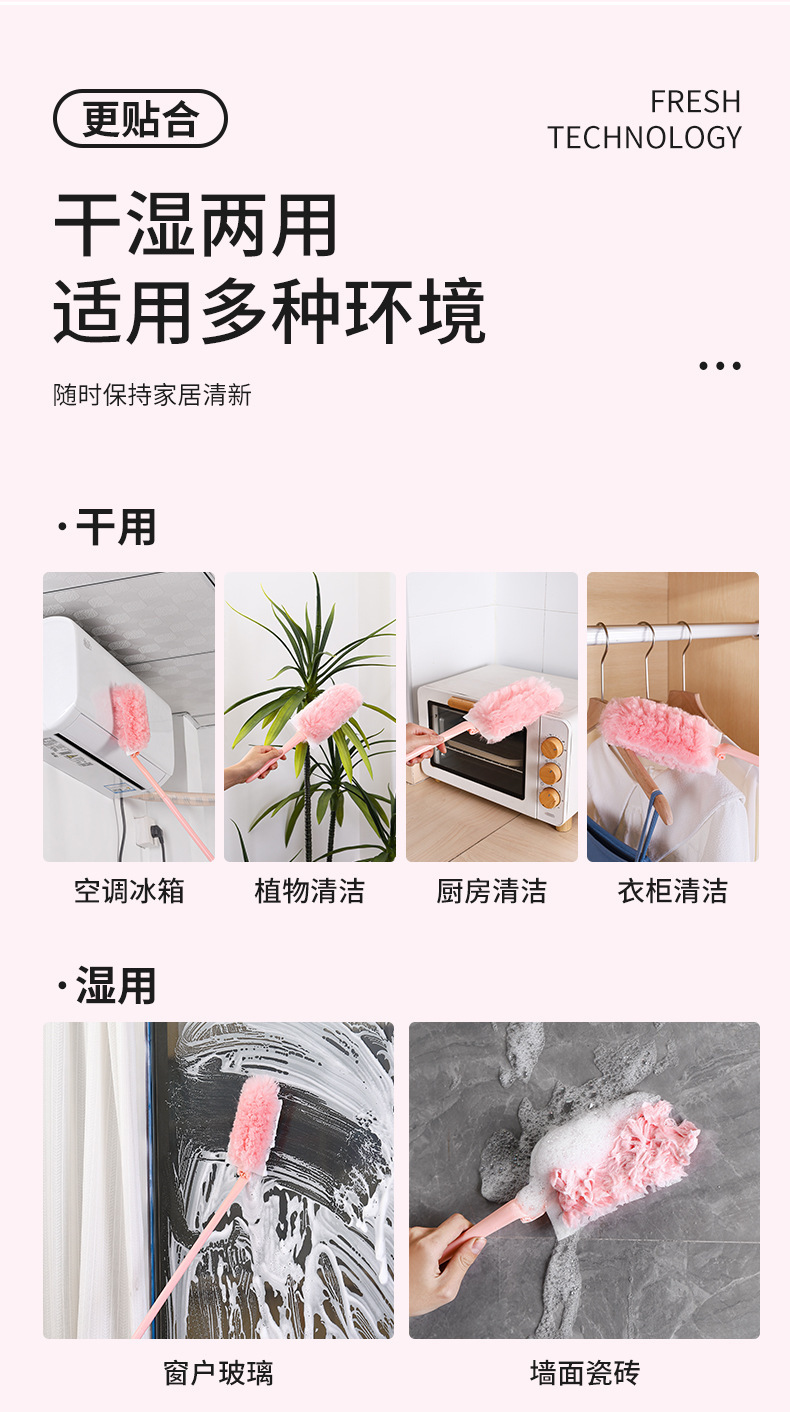 먼지 제거용 청소솔, 길이 조절 가능, 정전기 흡착 먼지 제거, 깃털 먼지떨이, 가정용, 일상용, 주방 및 욕실 청소, 정전기 방지스토어 가기