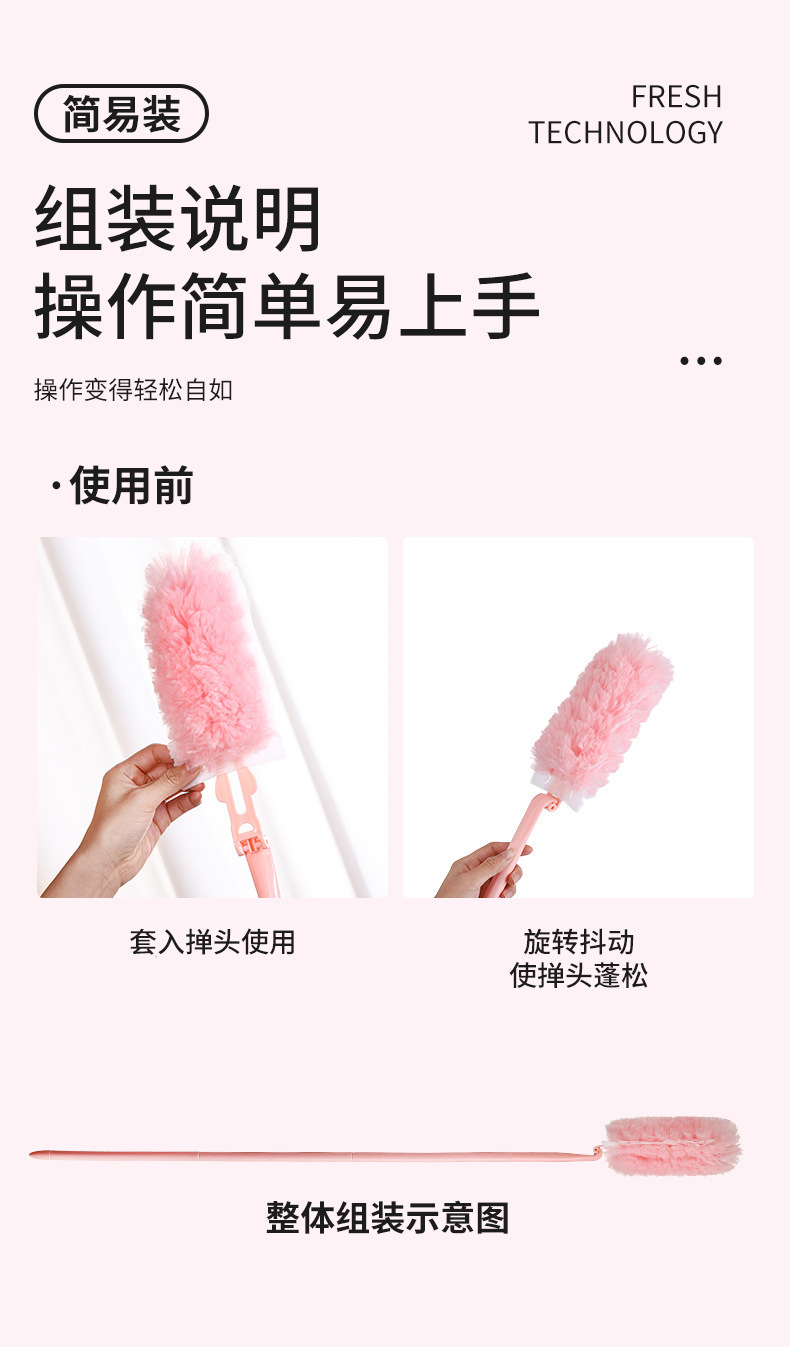 • 핑크색 짧은 스타일 막대 1개 먼지떨이 1개