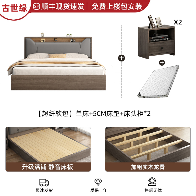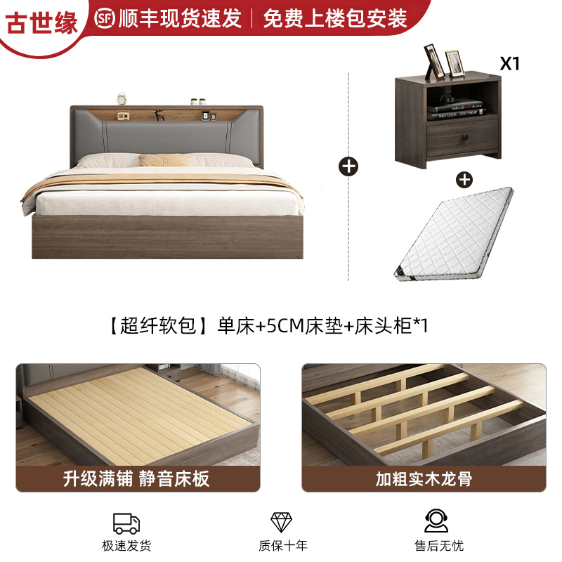 • [색상 비고] 대형 소프트 패키지 그레이 싱글 침대 + 10CM 매트리스 + 침대 옆 테이블 * 1 [위층 패키지 설치]