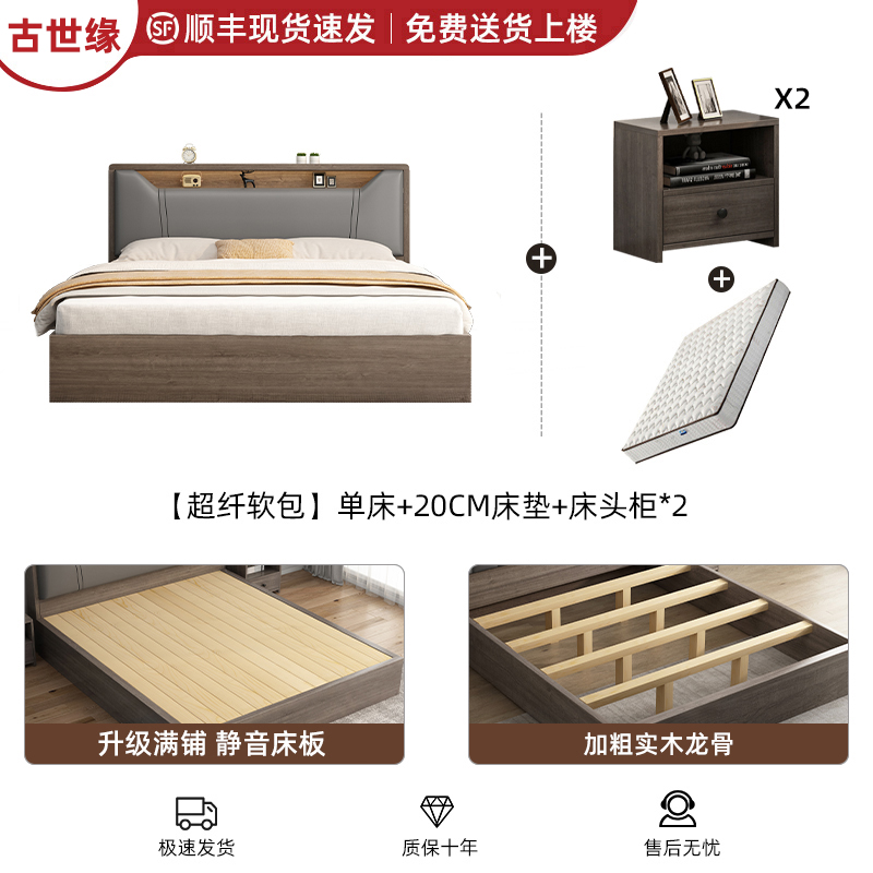 • [색상 비고] 대형 소프트 패키지 그레이 싱글 침대 + 10CM 매트리스 + 침대 옆 테이블 * 2 [위층 패키지 설치]