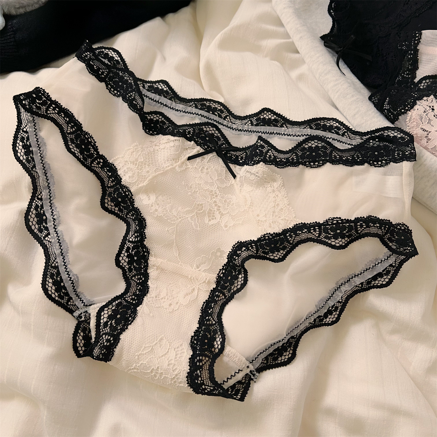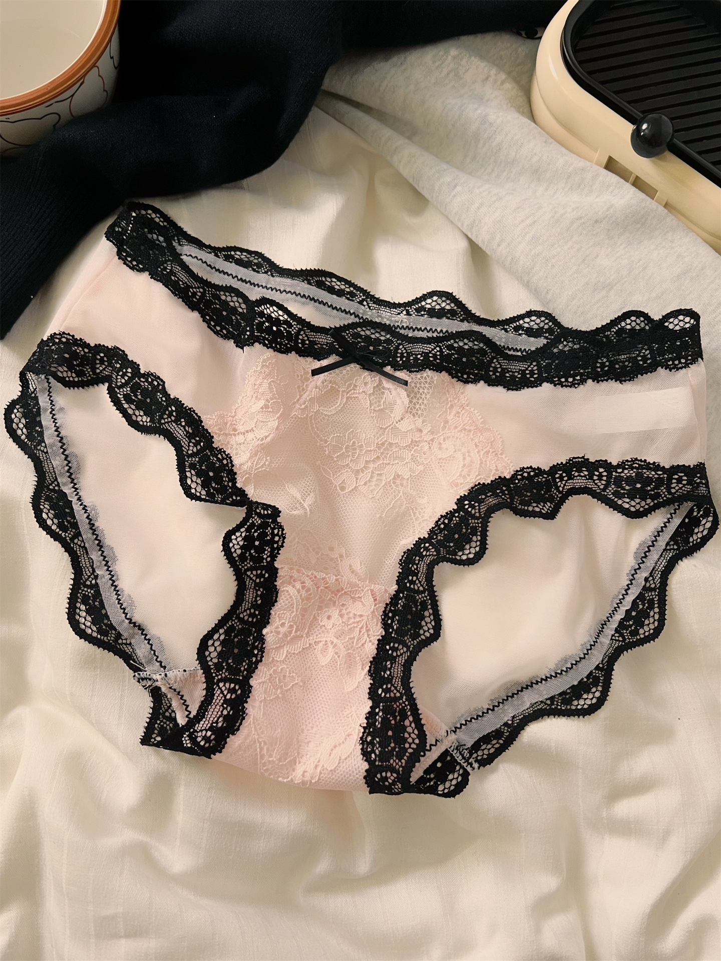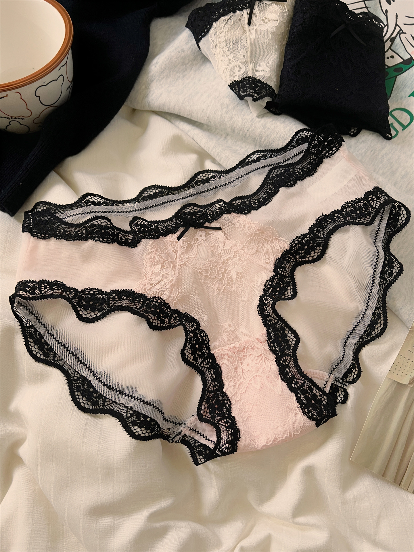 패셔너블하고 섬세한 기술~섹시한 레이스 팬티, 메쉬 통기성 소녀의 절묘한 리본, 피부 친화적인 로우 웨이스트 팬티